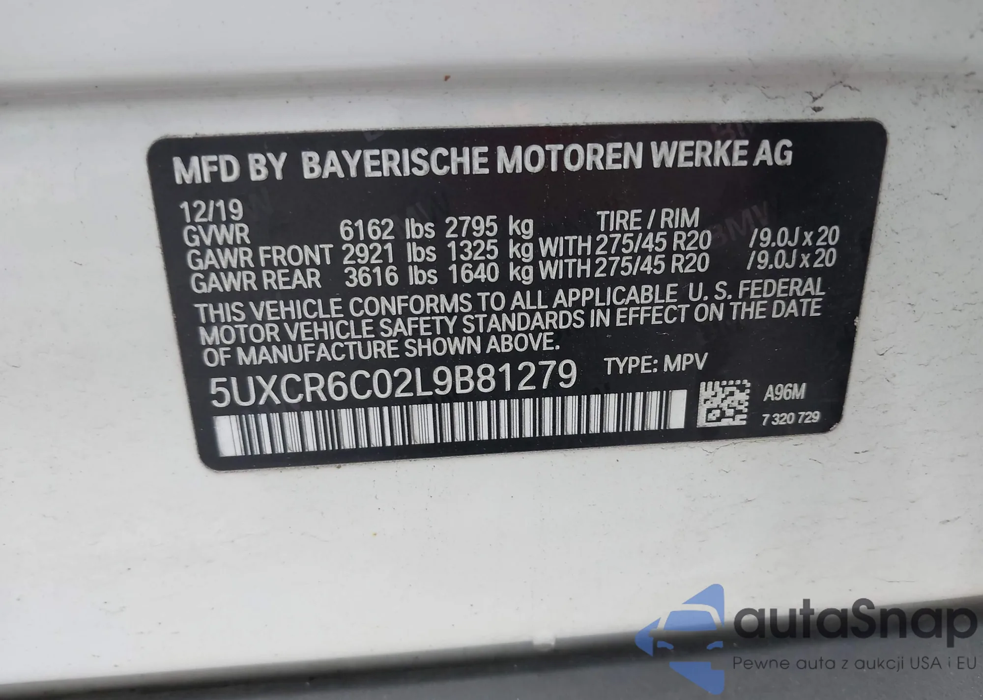 LOT: 43390121 VIN: 5UXCR6C02L9B81279