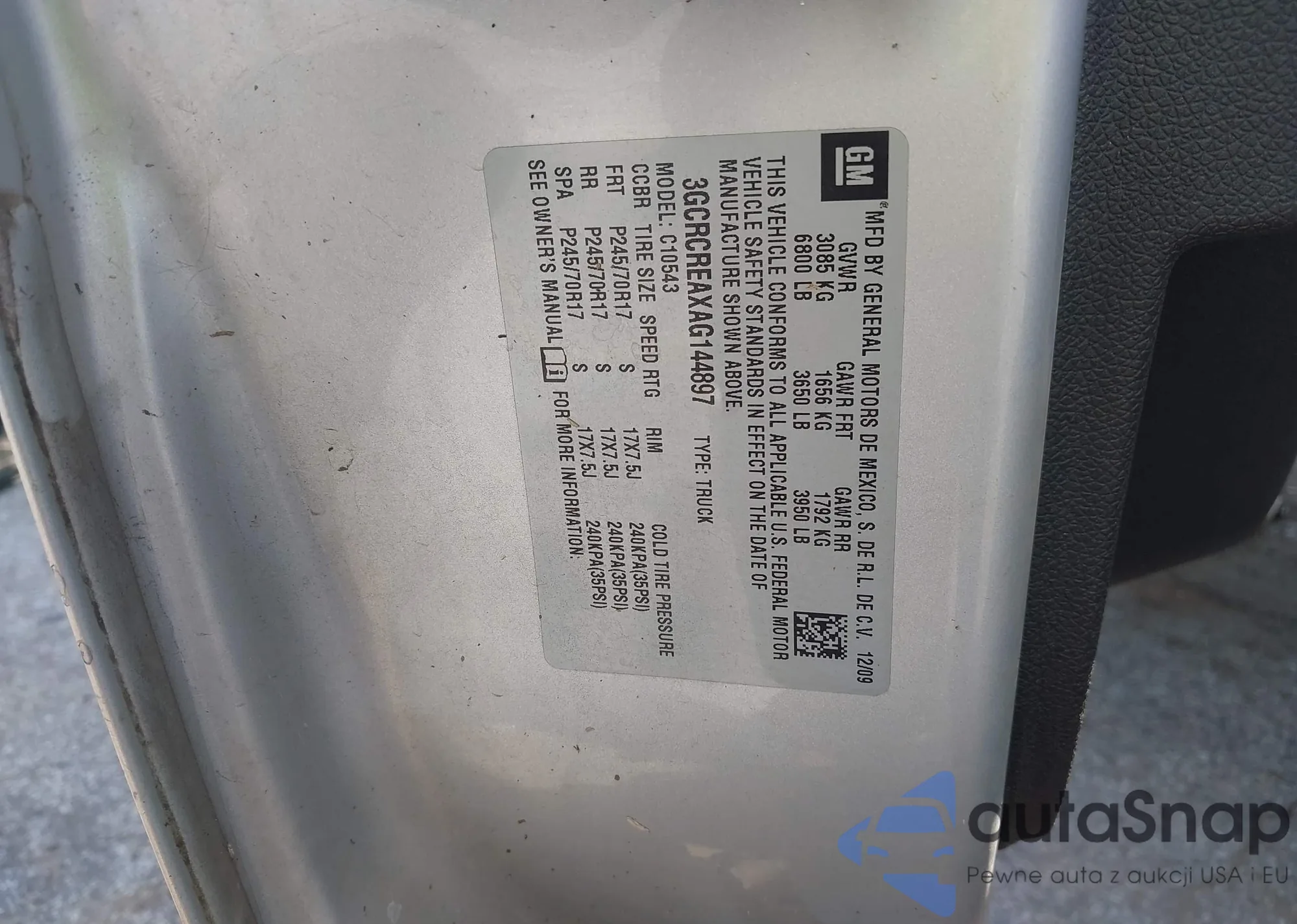 • VIN 3GCRCREAXAG144897
