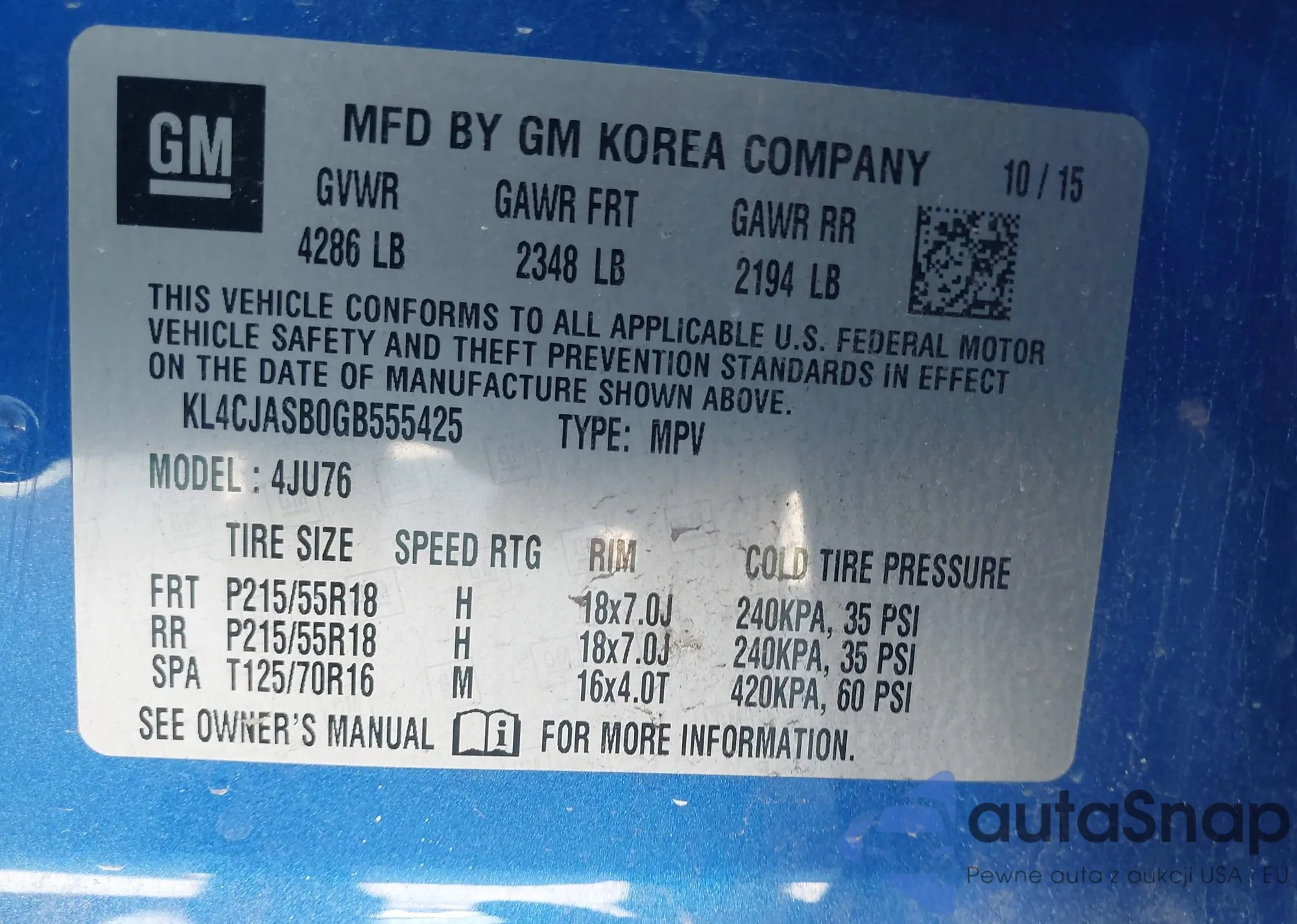 • VIN KL4CJASB0GB555425