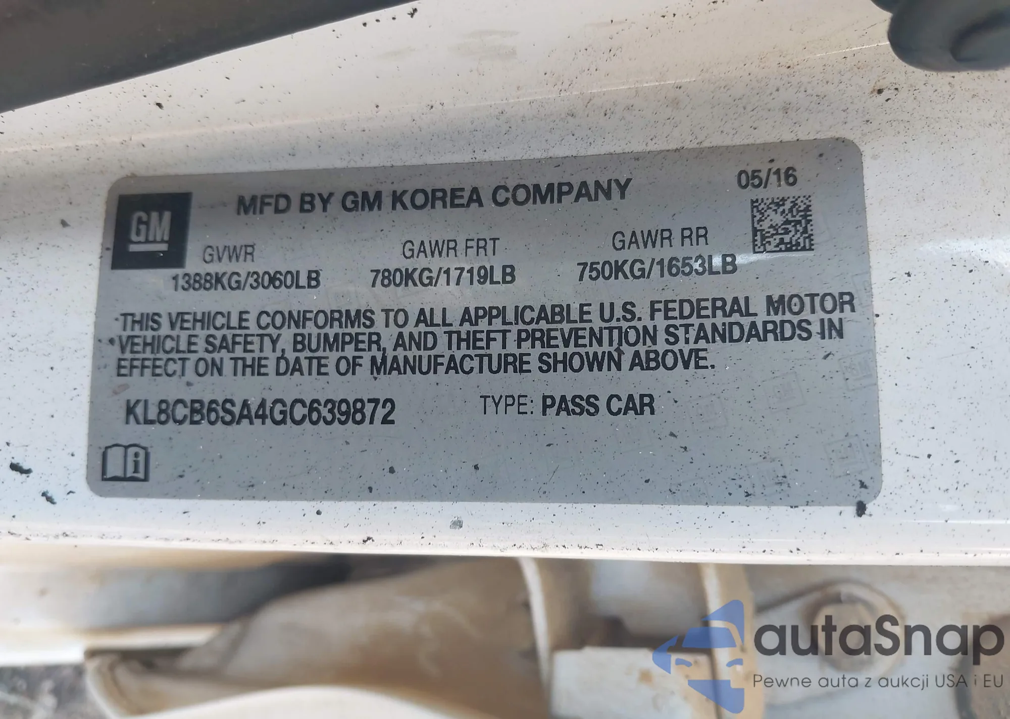 • VIN KL8CB6SA4GC639872