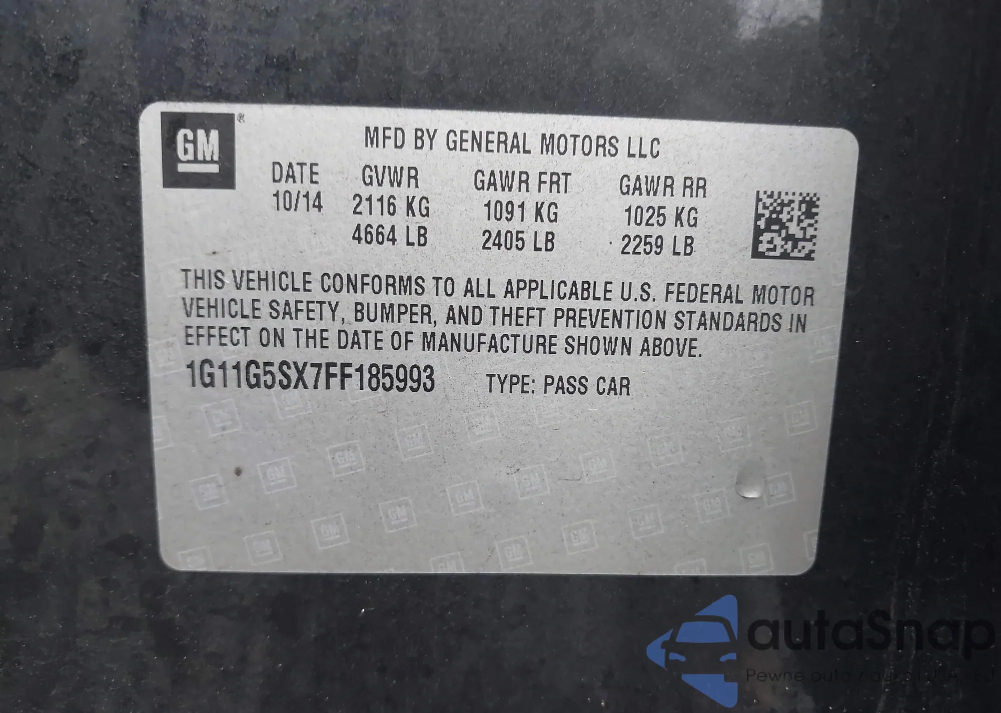 • VIN 1G11G5SX7FF185993