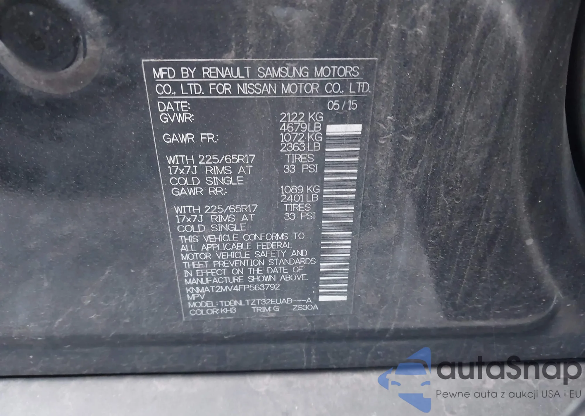 • VIN KL4CJASB5KB867037