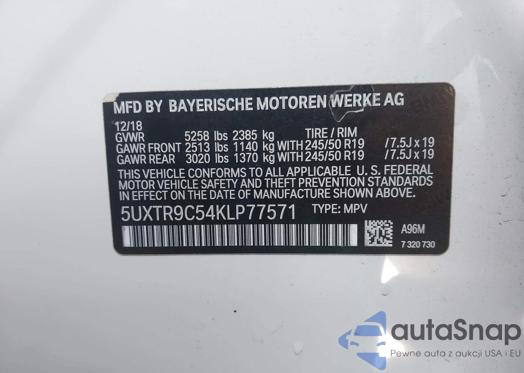 LOT: 43206874 VIN: 5UXTR9C54KLP77571