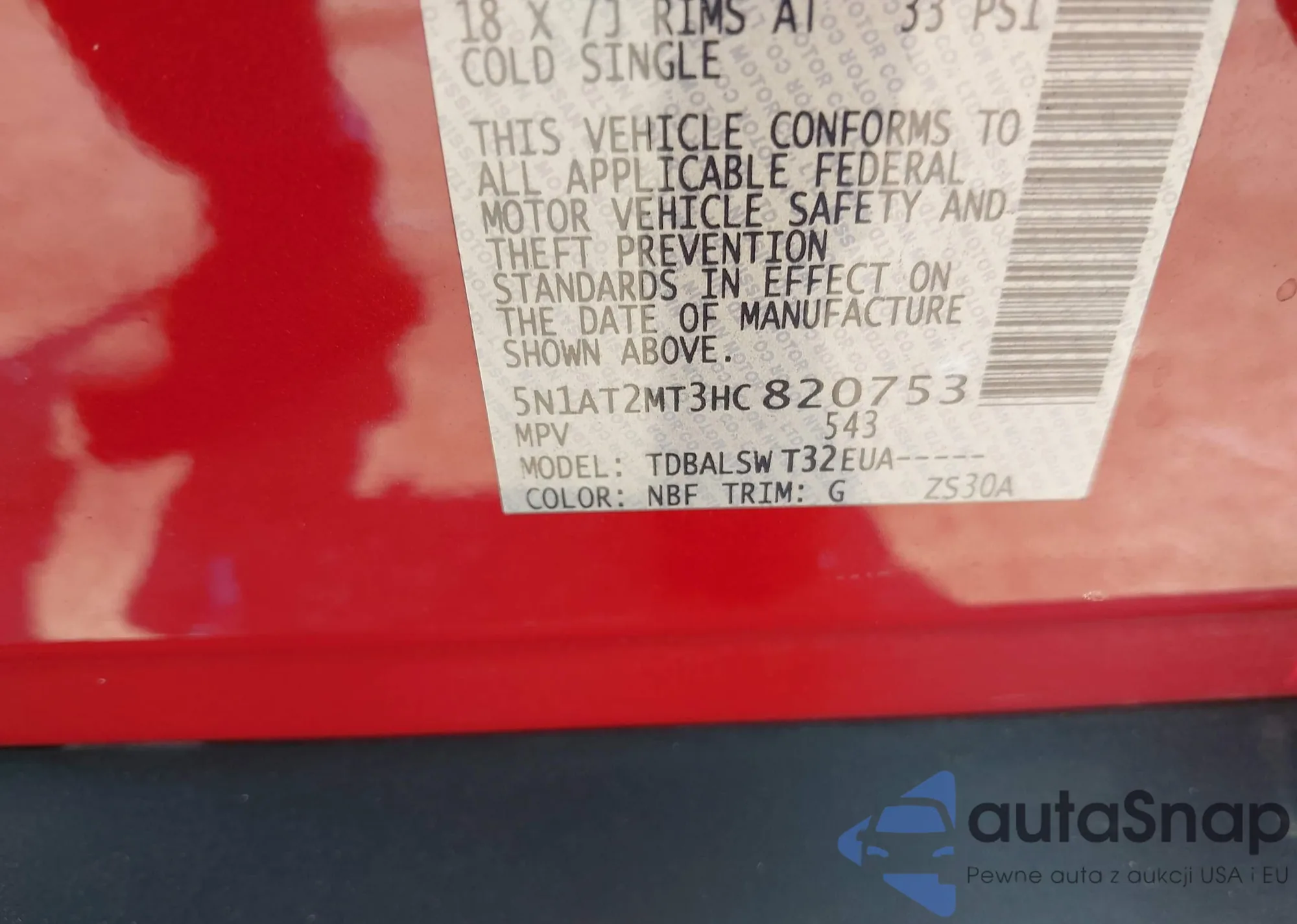 LOT: 43237632 VIN: 5N1AT2MT3HC820753