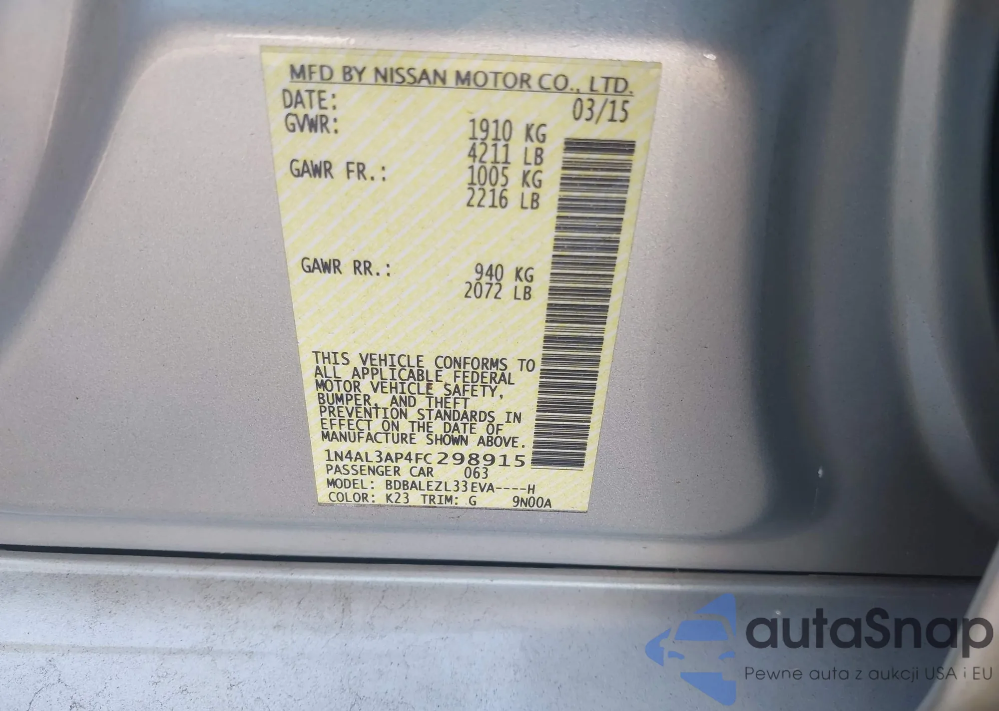 LOT: 43249080 VIN: 1N4AL3AP4FC298915