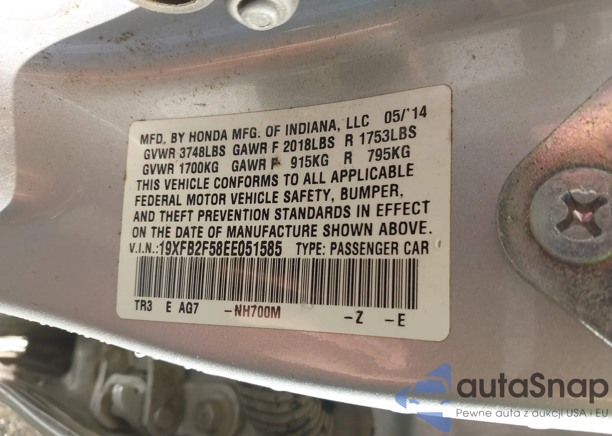 • VIN 19XFB2F58EE051585