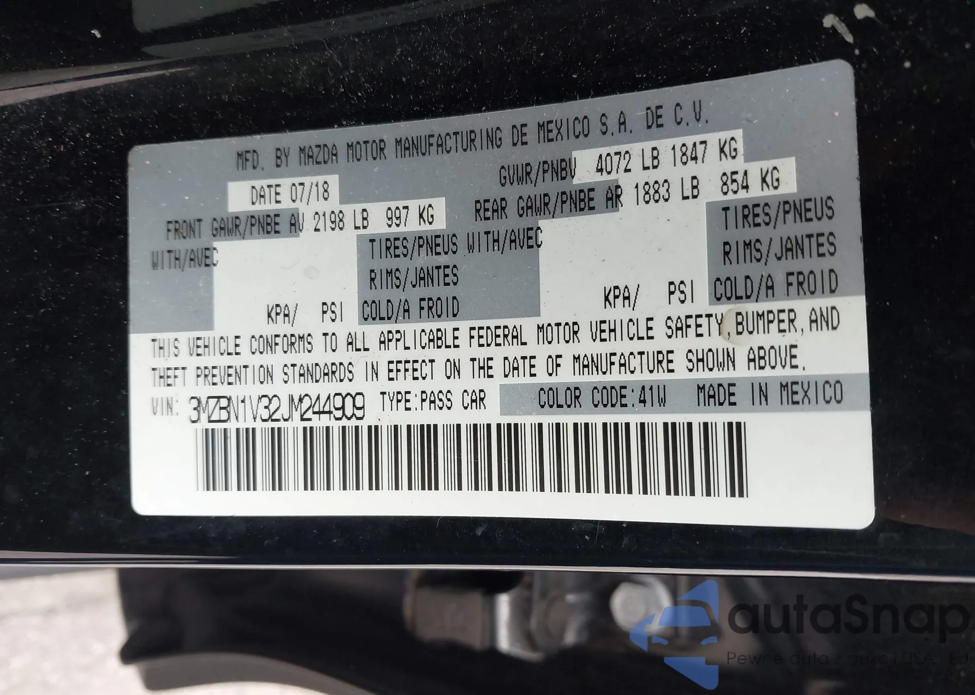 LOT: 43647820 VIN: 3MZBN1V32JM244909