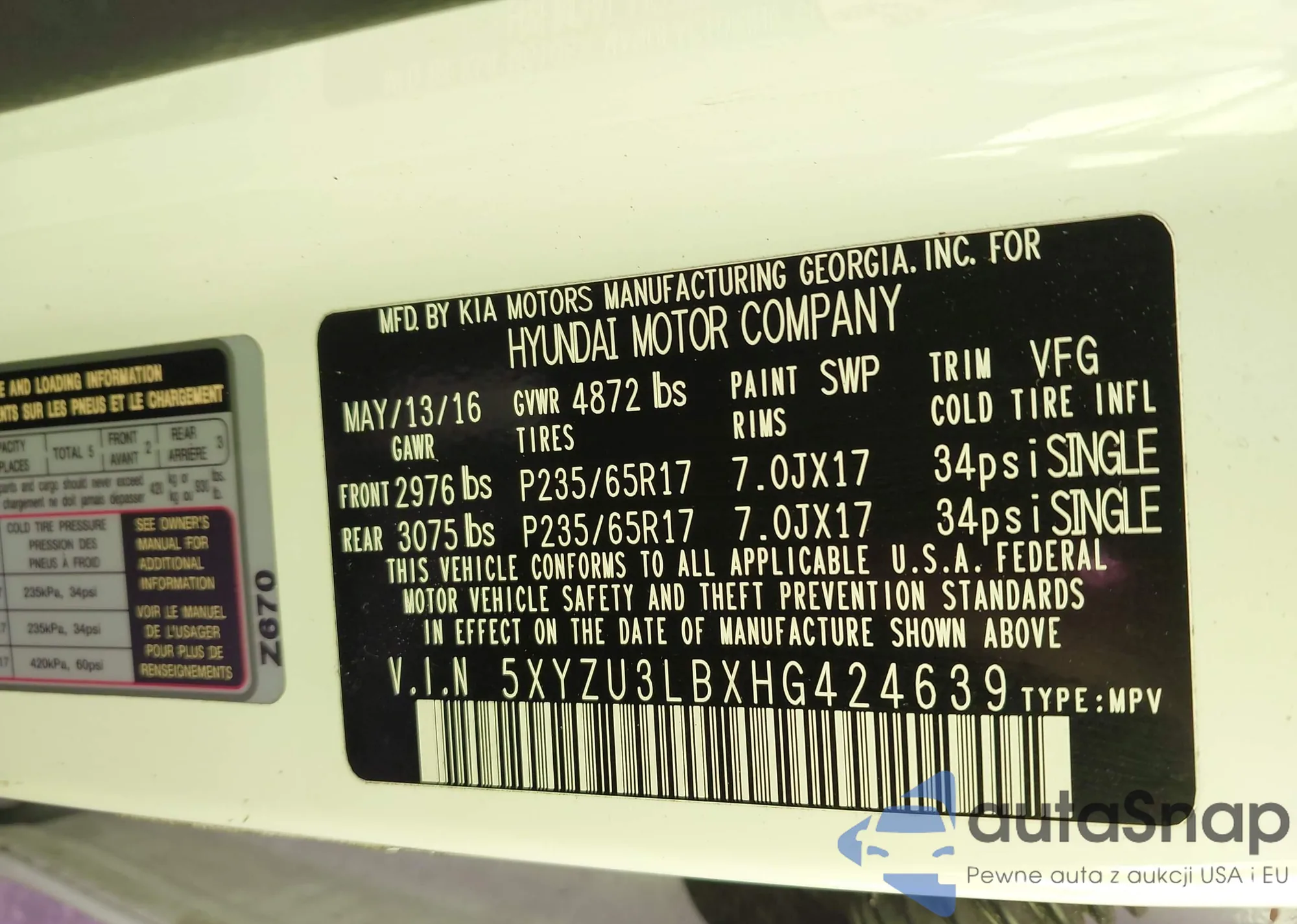 • VIN 5XYZU3LBXHG424639