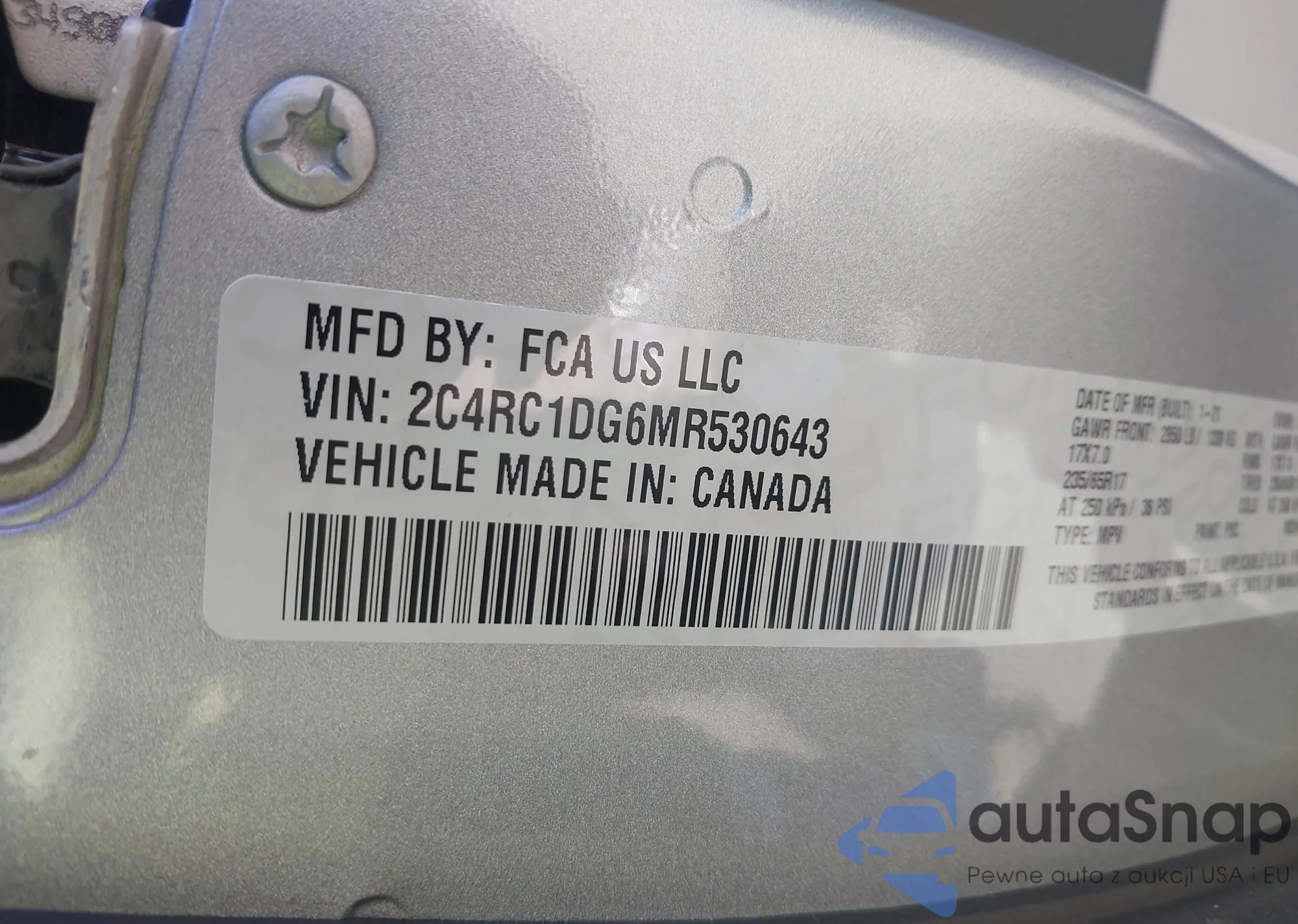 • VIN 2C4RC1DG6MR530643