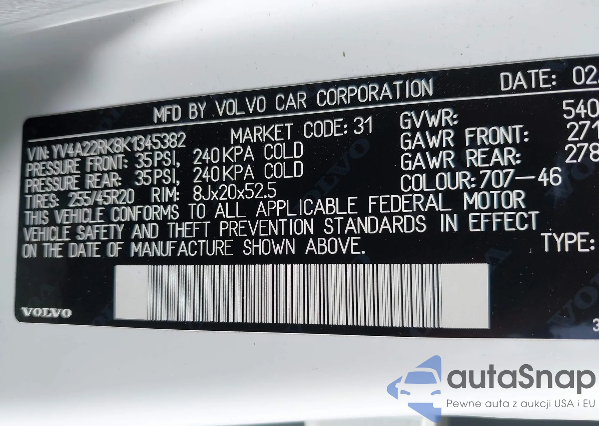 • VIN YV4A22RK8K1345382