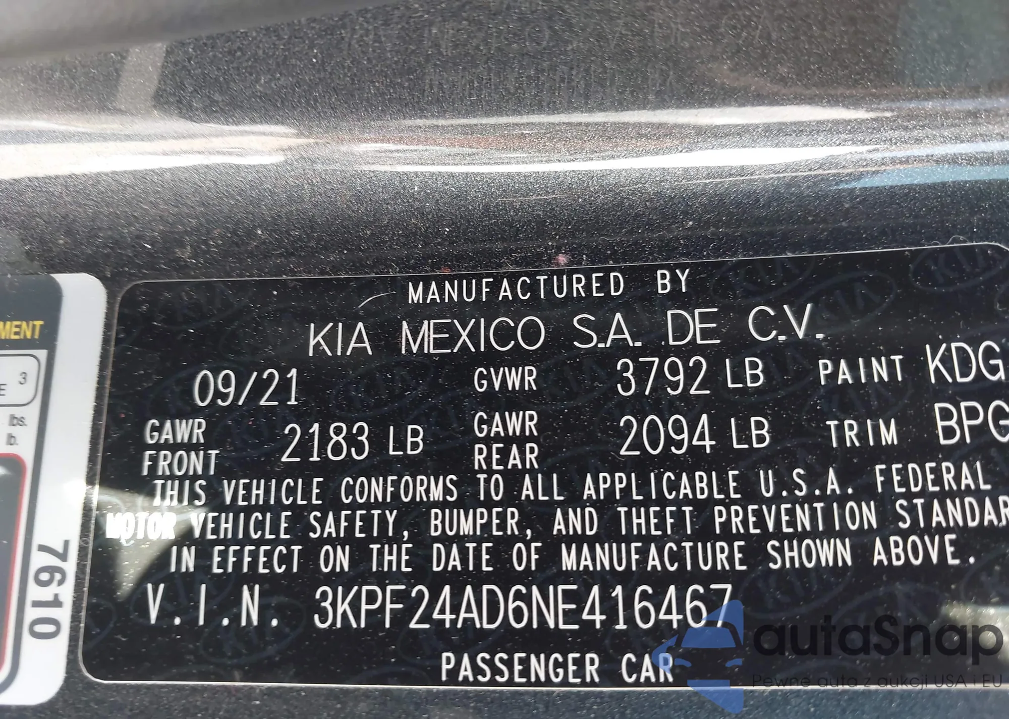 • VIN 3KPF24AD6NE416467