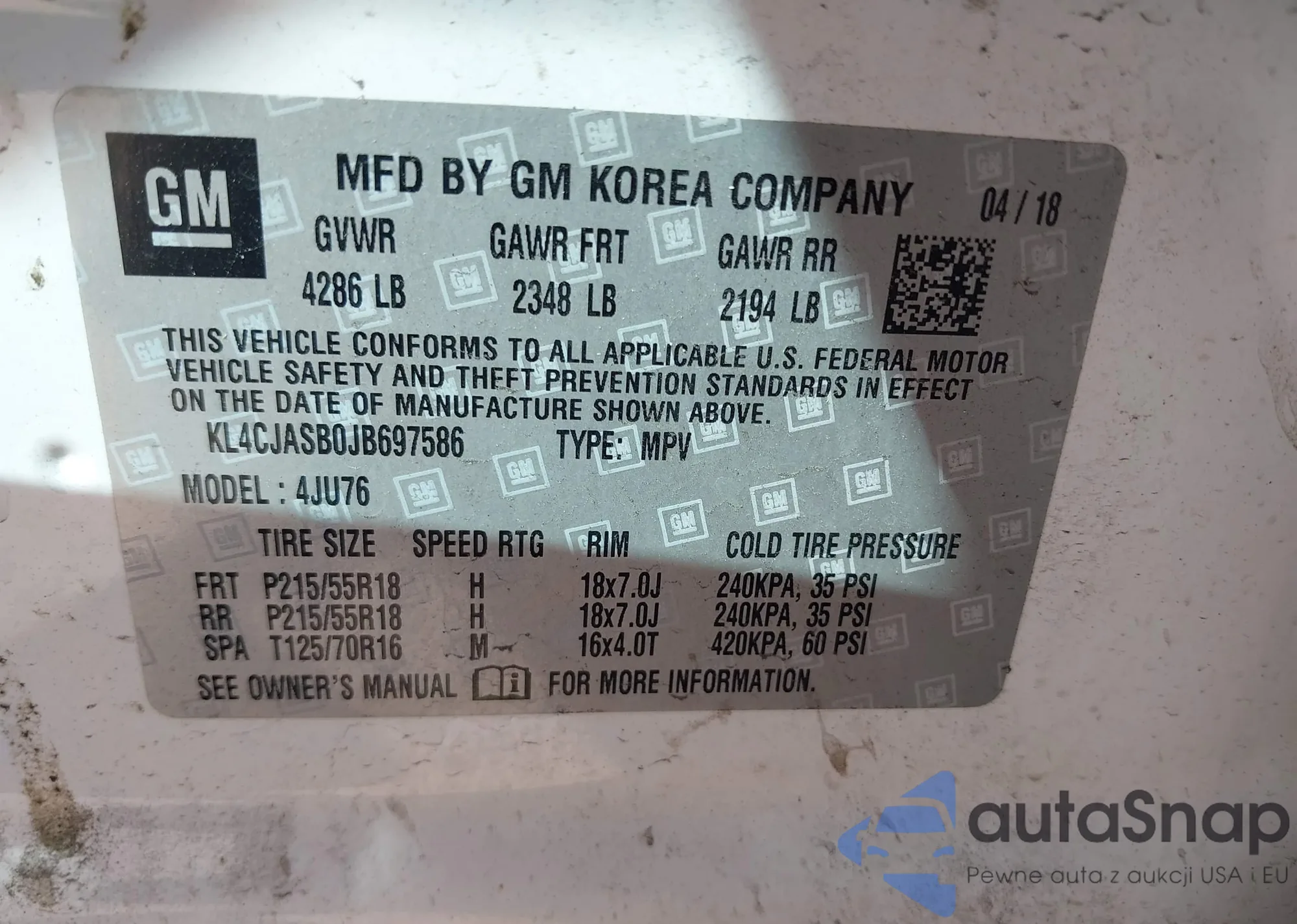 • VIN 2HKRW2H57JH619670