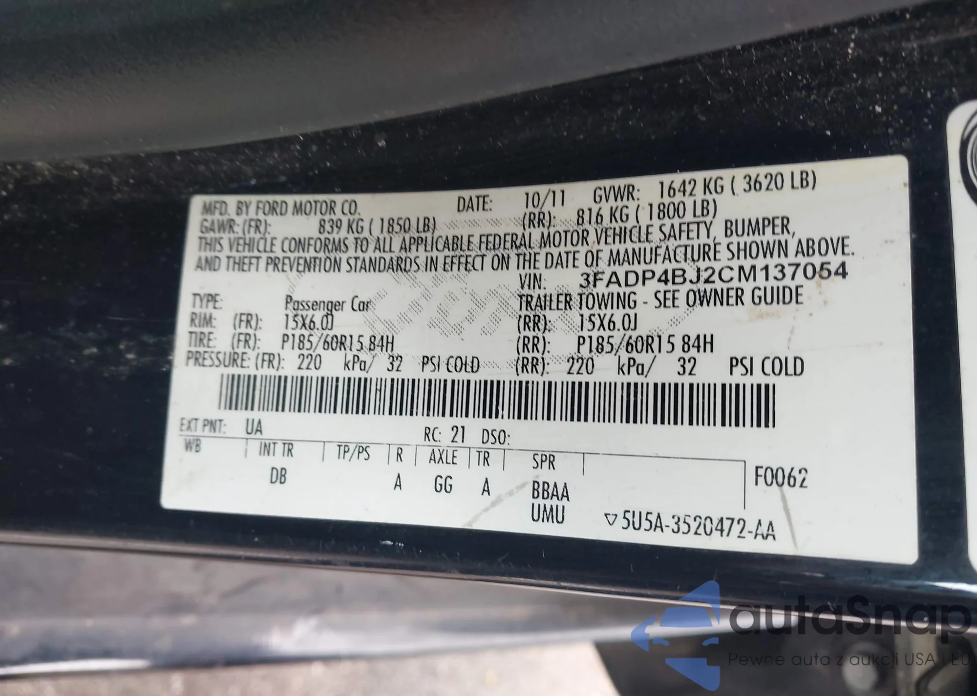 • VIN 2FMDK3JC3EBA94477