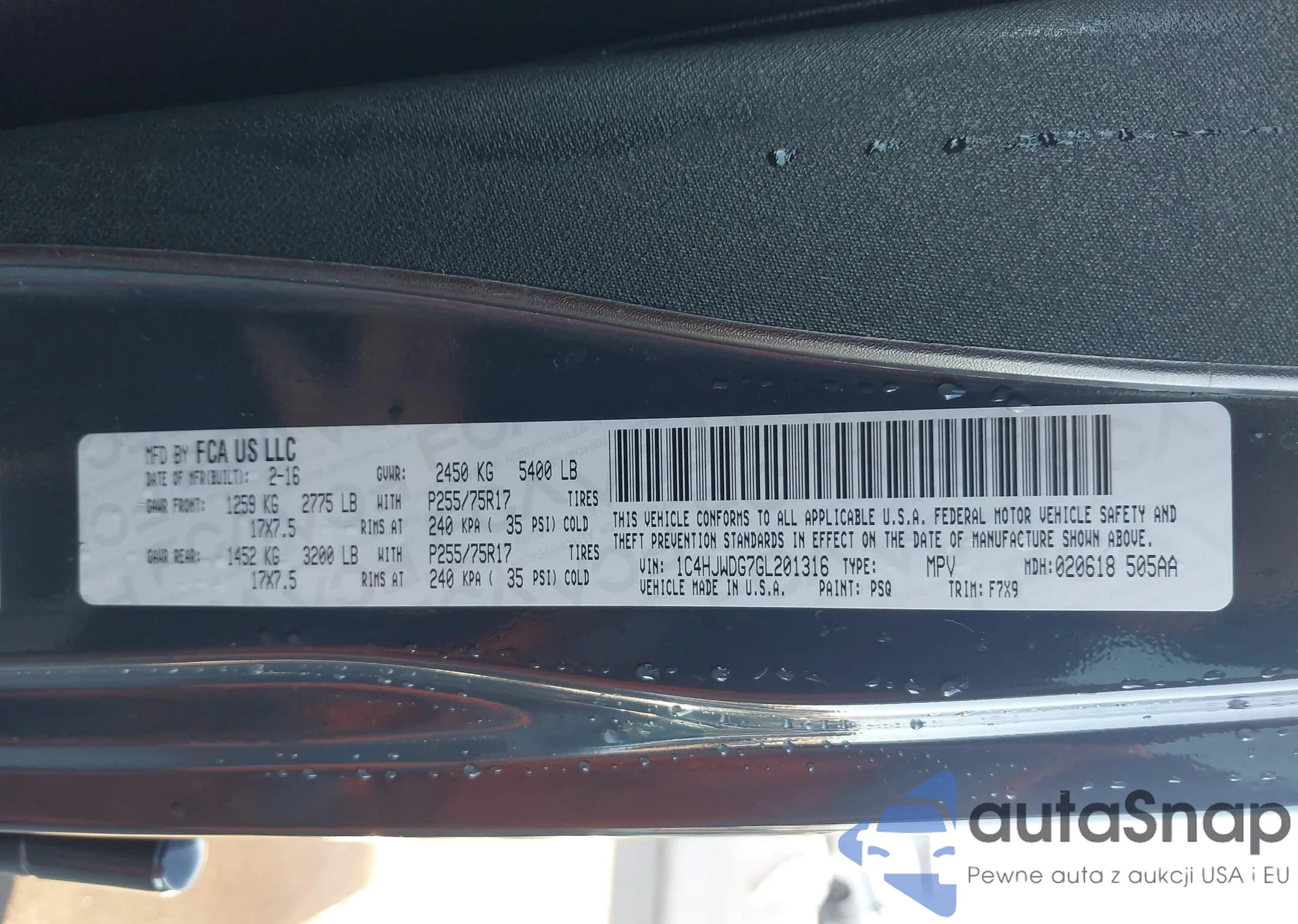 • VIN 1C4HJWDG7GL201316