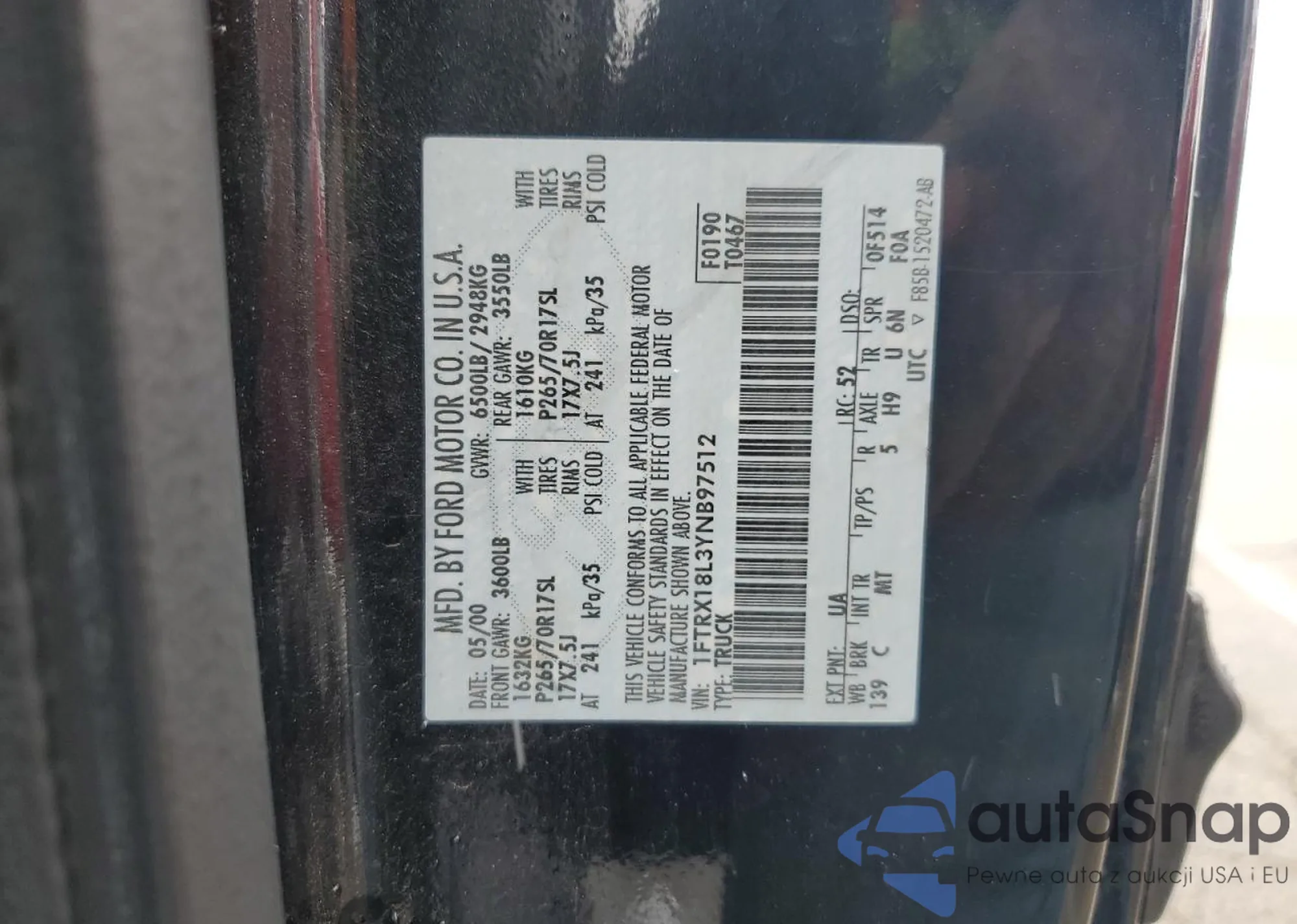 • VIN 1FTRX18L3YNB97512