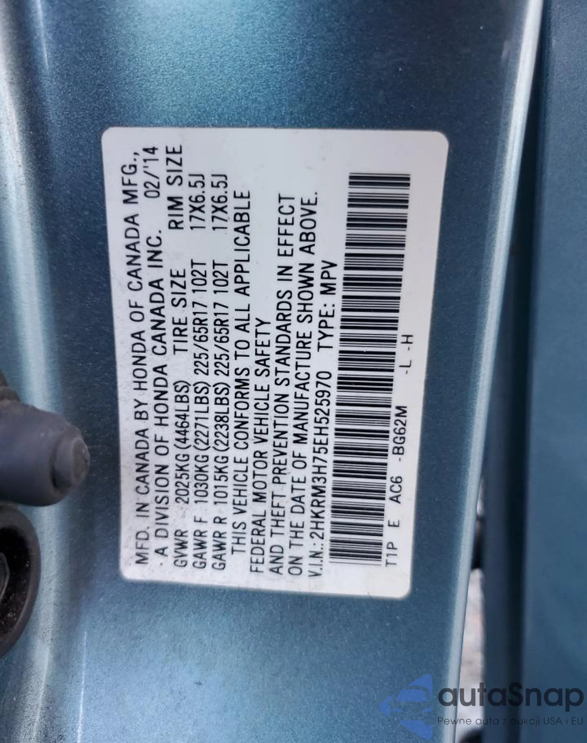 LOT: 59673775 VIN: 5J6RW6H33HL006256