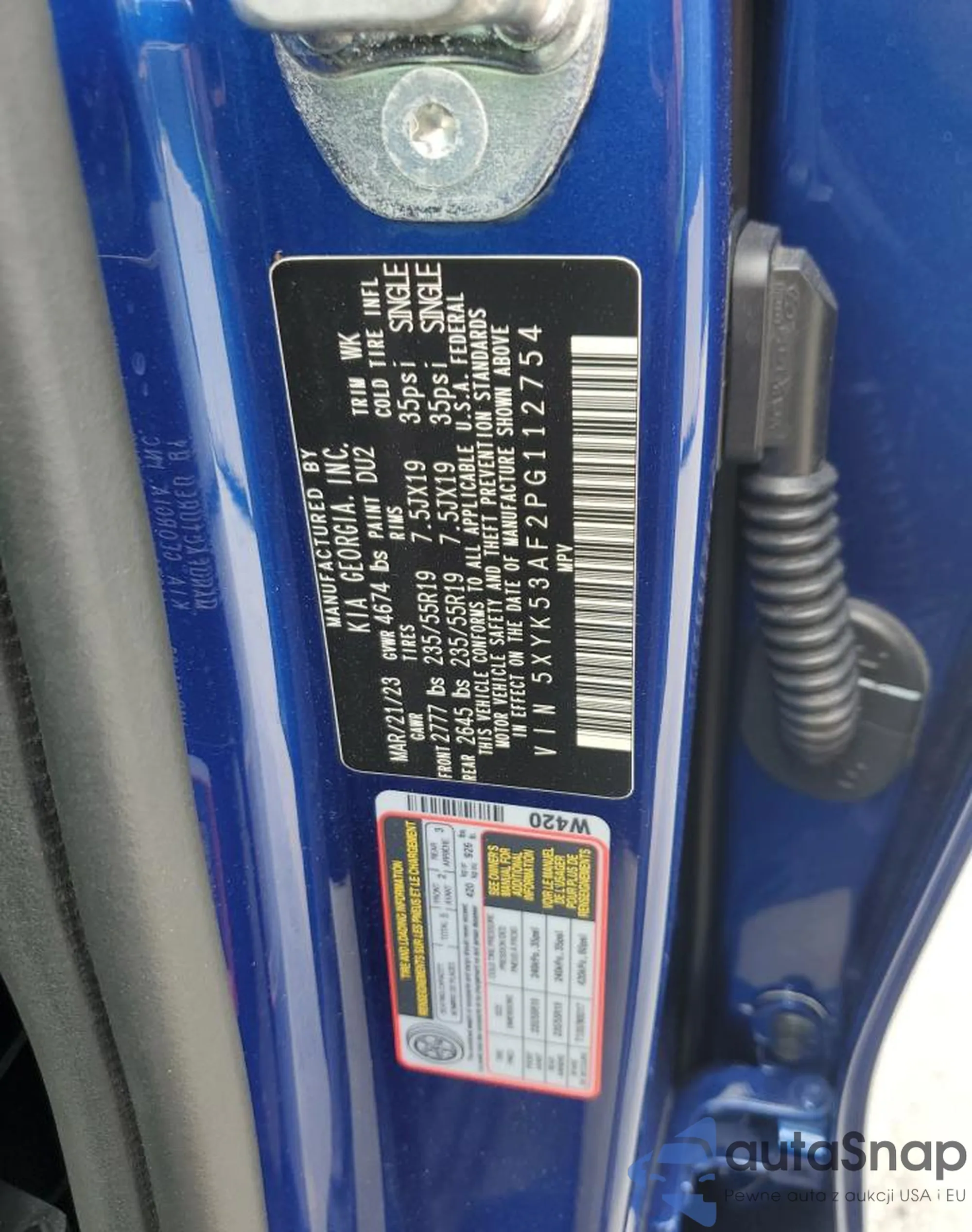 • VIN 5XYK53AF2PG112754