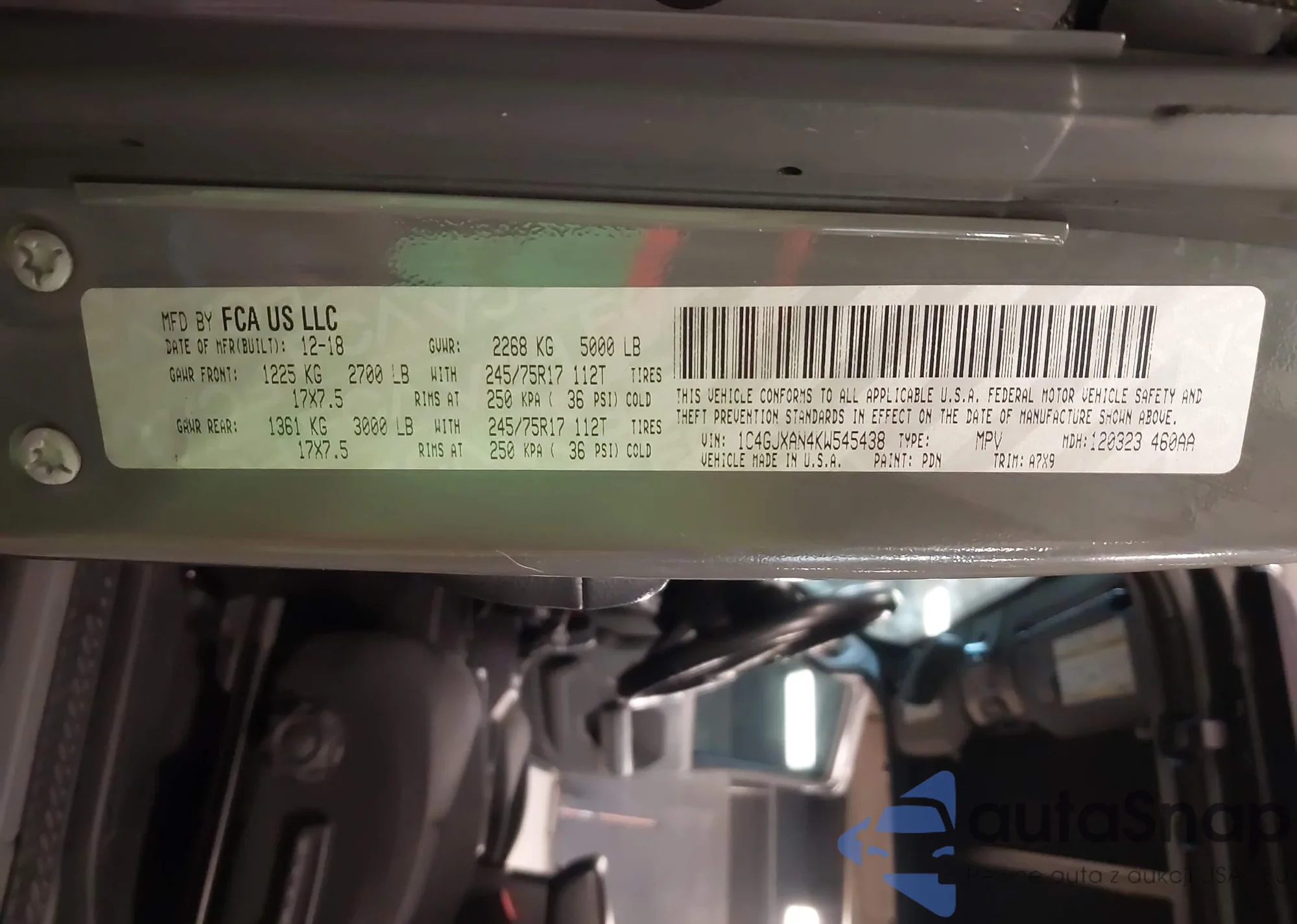 • VIN KL7CJNSBXMB346439