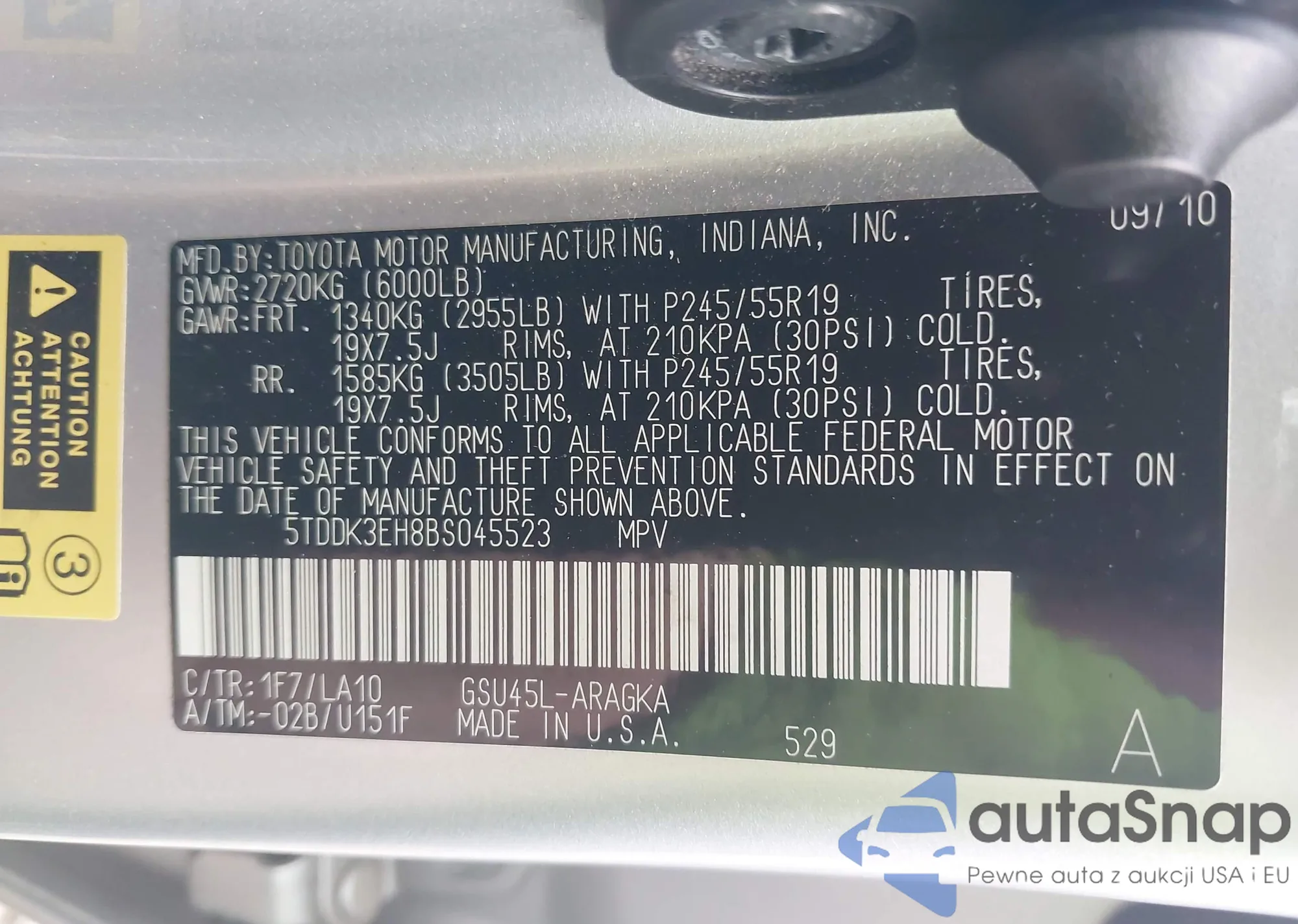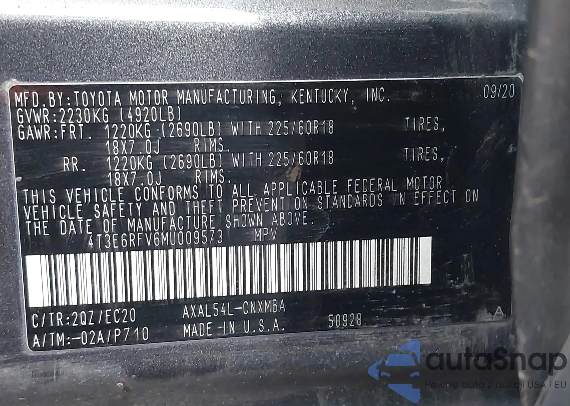 • VIN 4T3E6RFV6MU009573
