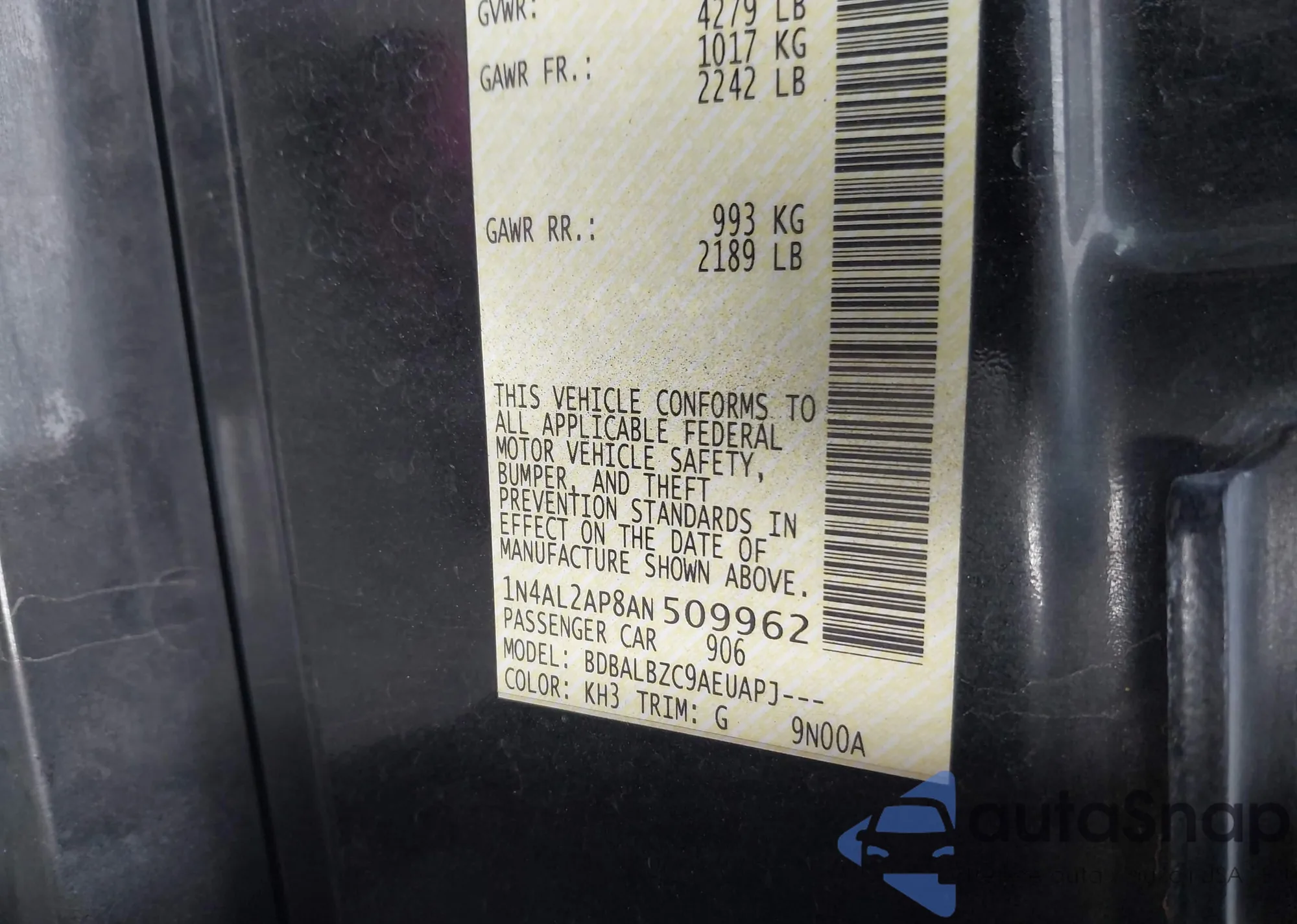 • VIN 1N4AL2AP8AN509962