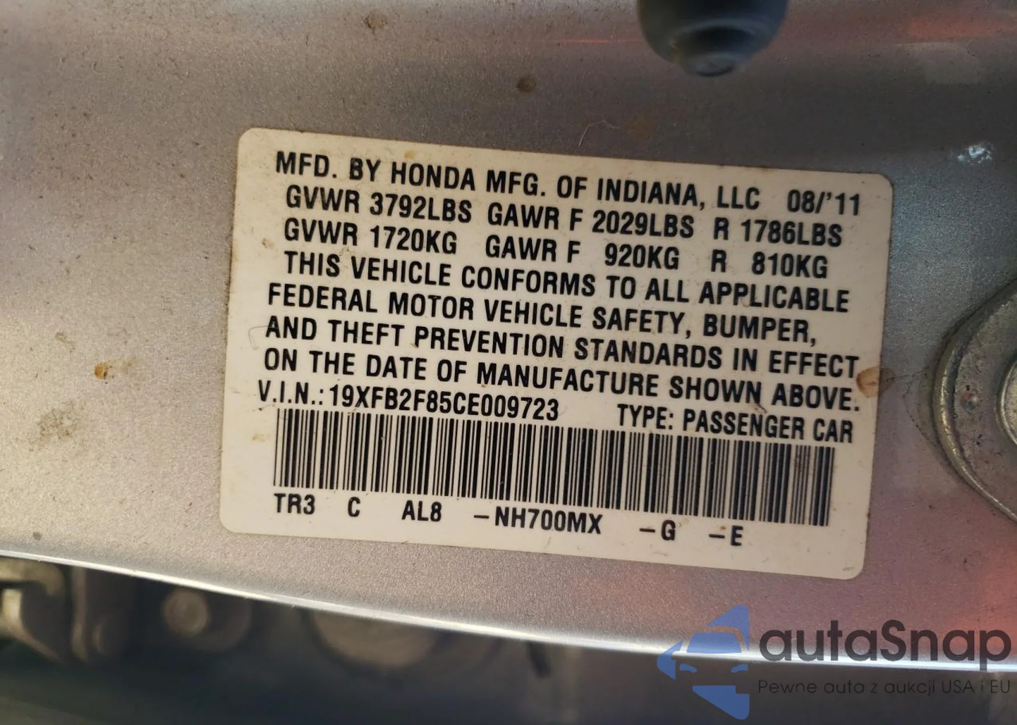 • VIN 19XFB2F85CE009723
