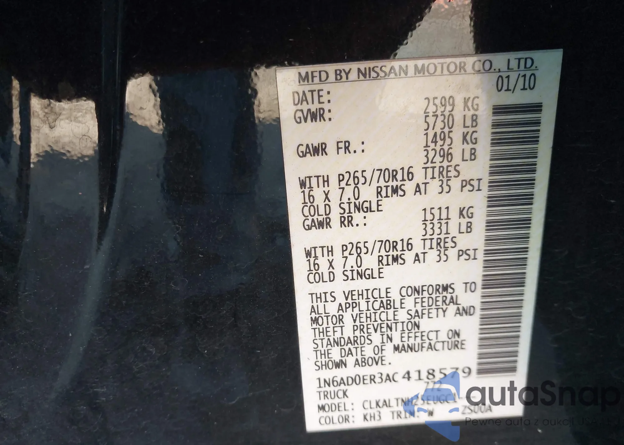 • VIN 1N6AD0ER3AC418579