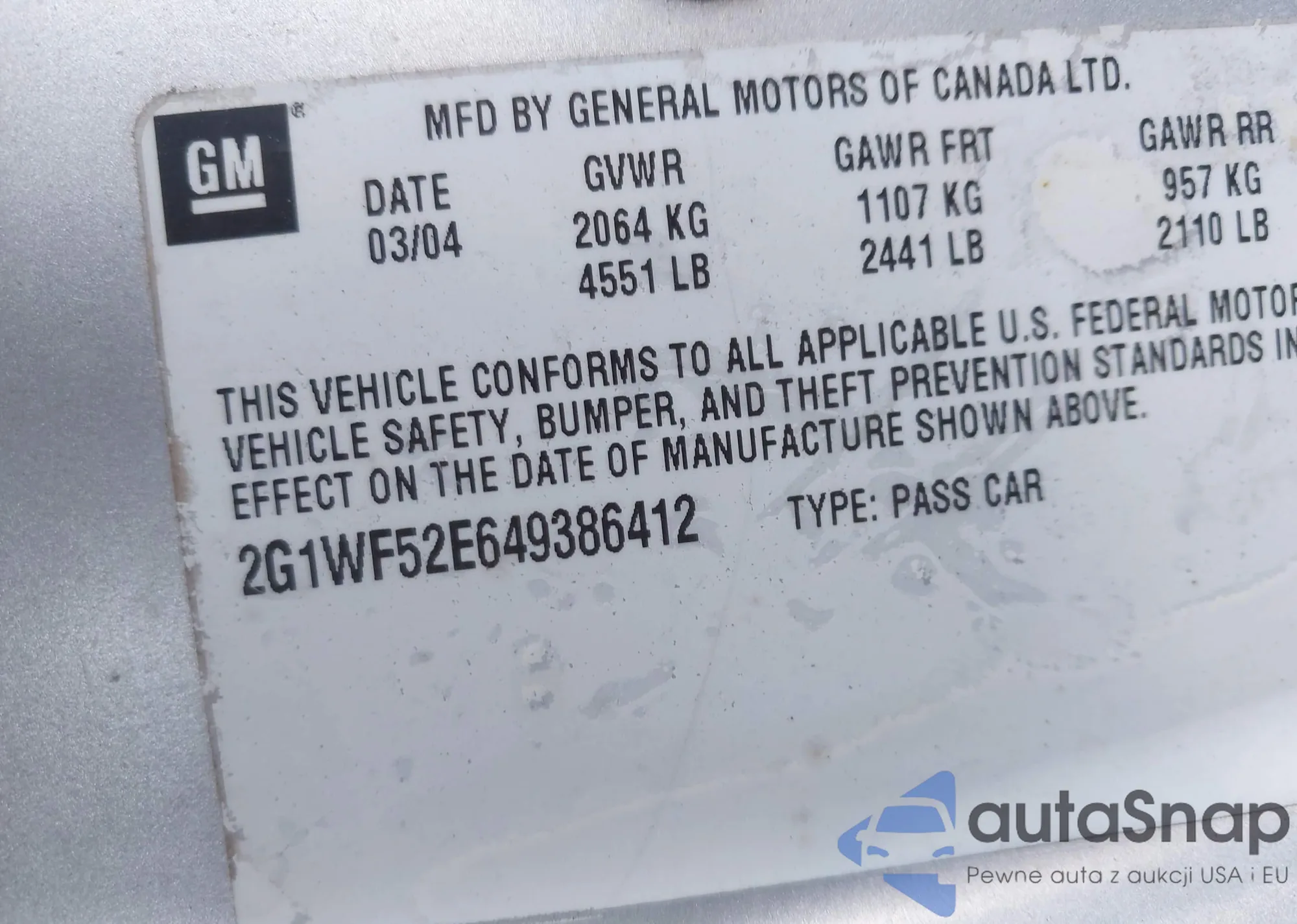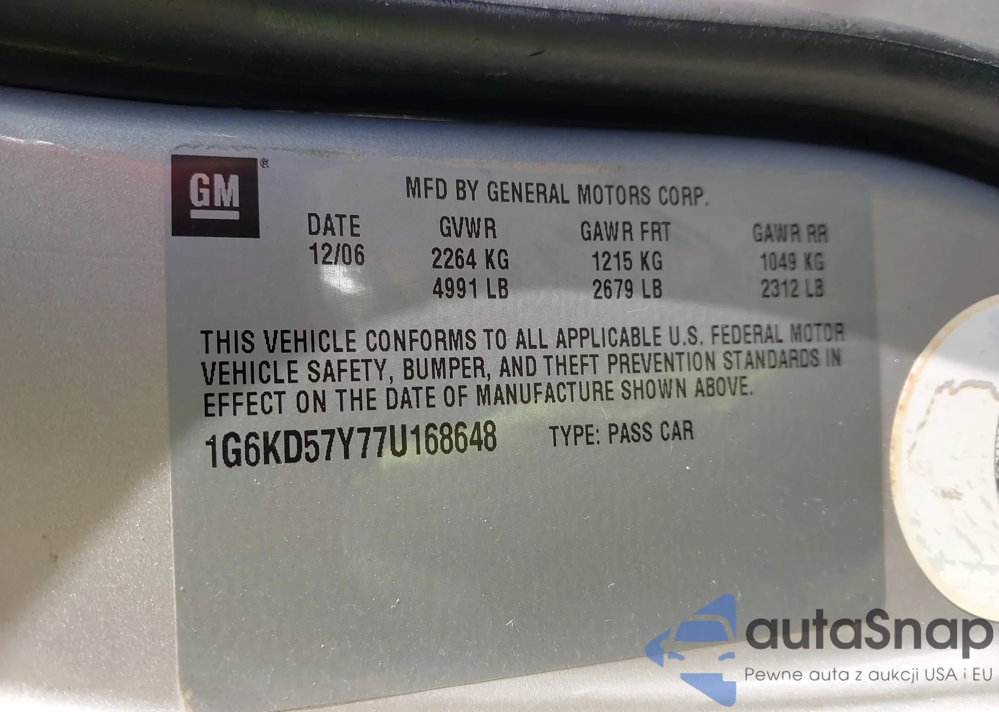• VIN 1G6KD57Y77U168648