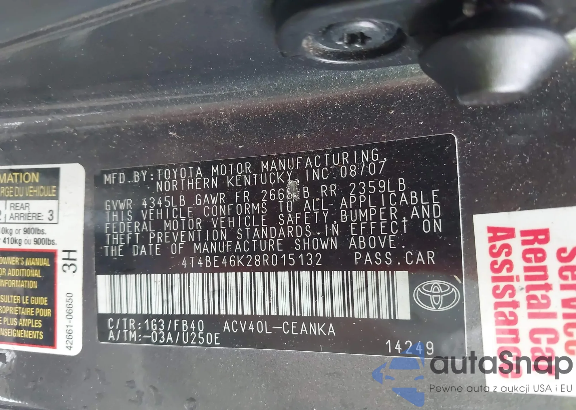 • VIN 4T4BE46K28R015132