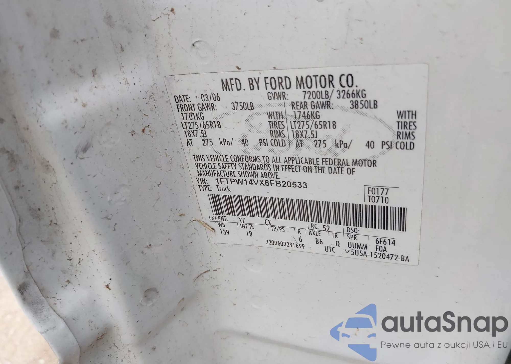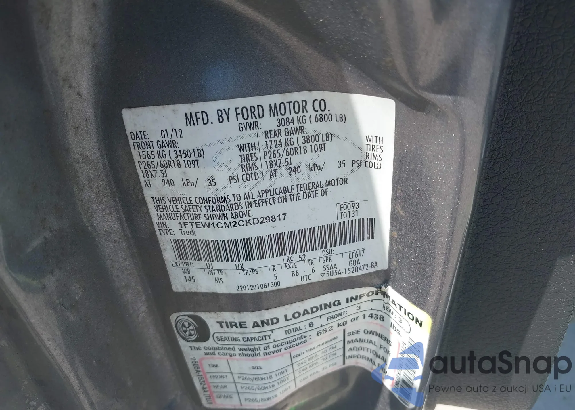 LOT: 43585738 VIN: 1FT7W2BT1JEB31104