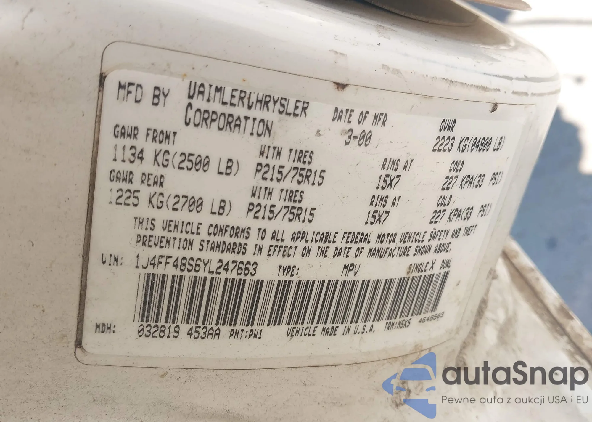 • VIN 1J4FF48S6YL247663