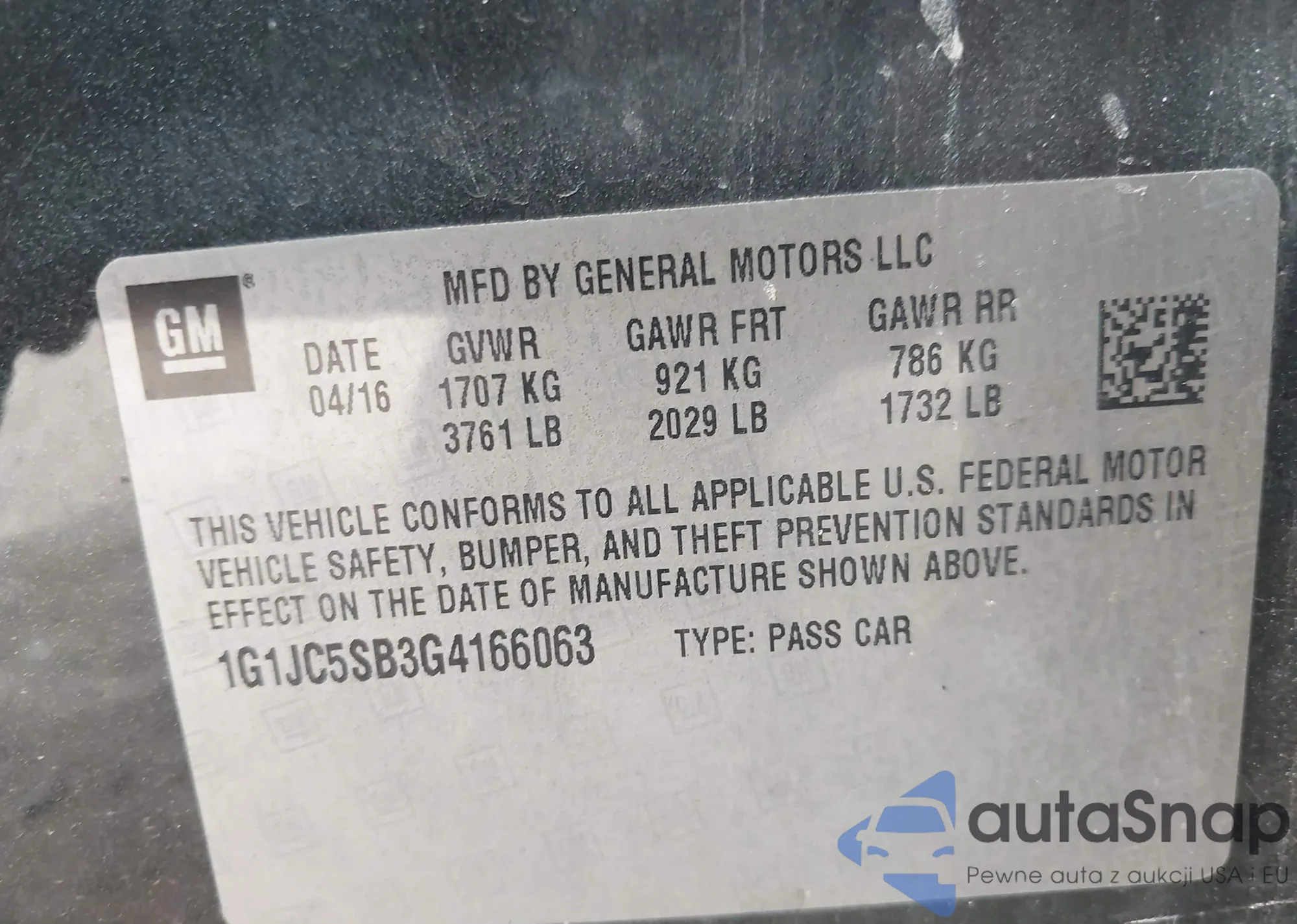 LOT: 43489211 VIN: 1G1JC5SB3G4166063