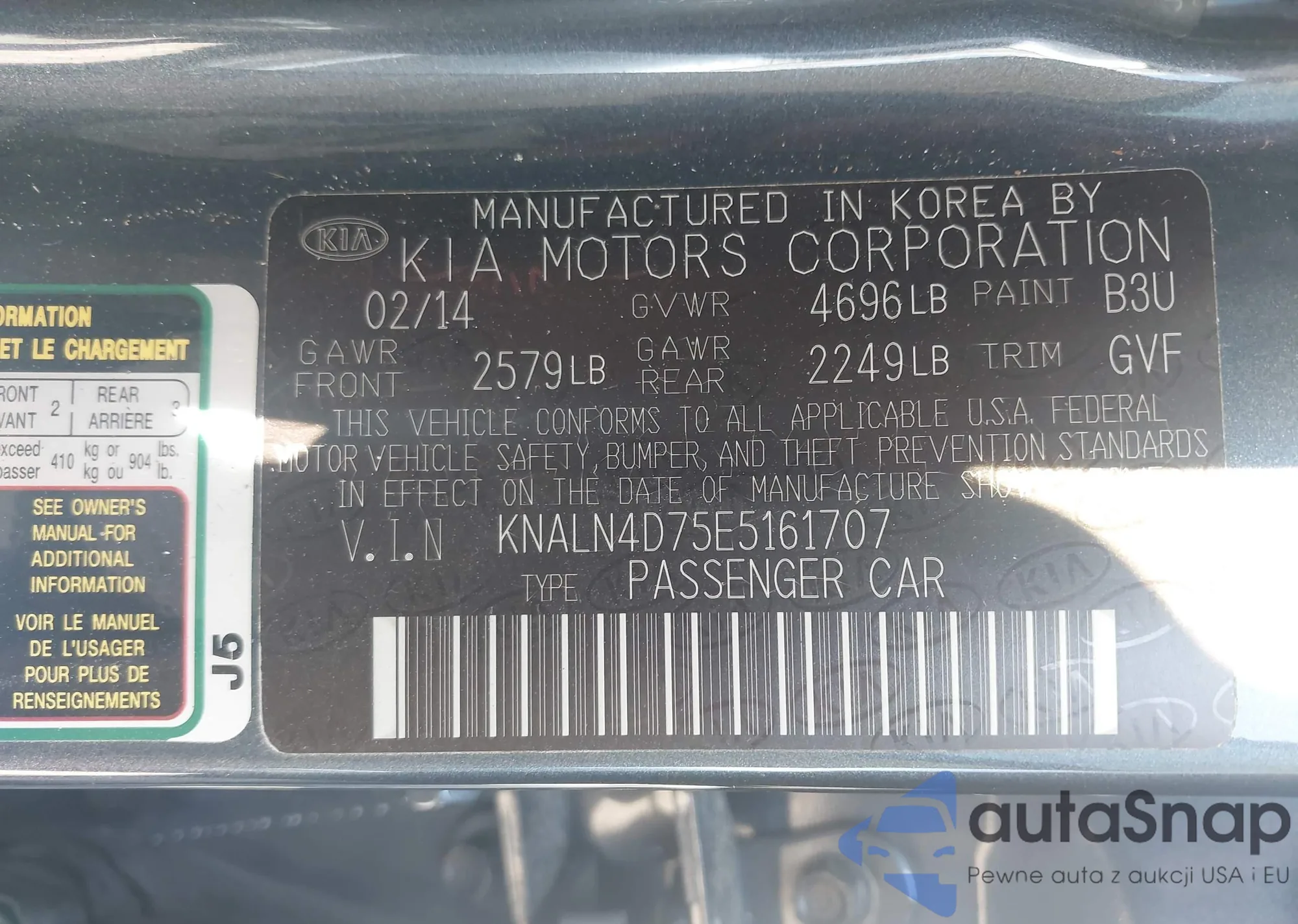 LOT: 43213792 VIN: KNALN4D75E5161707