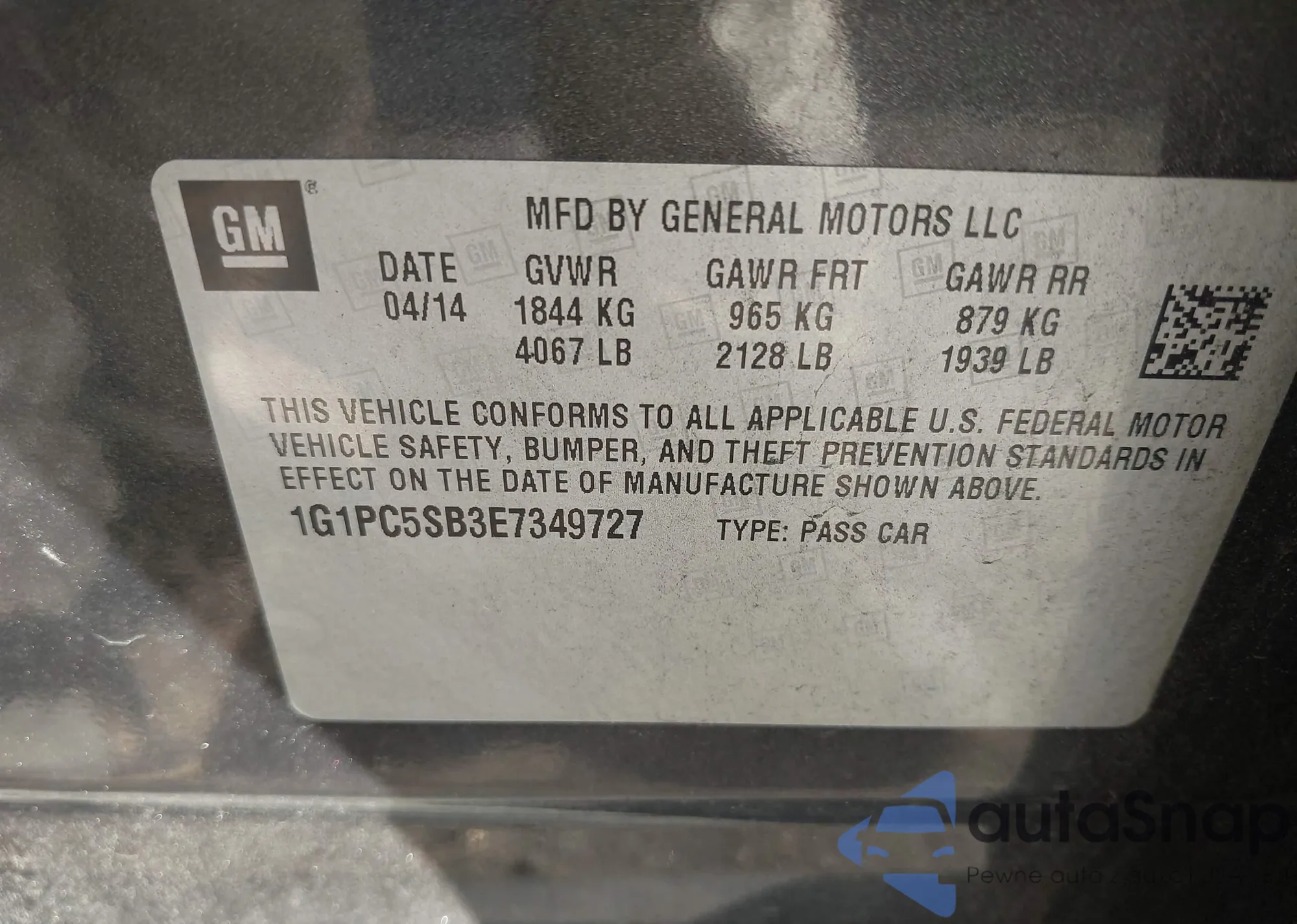 LOT: 43571475 VIN: 1G1PC5SB3E7349727