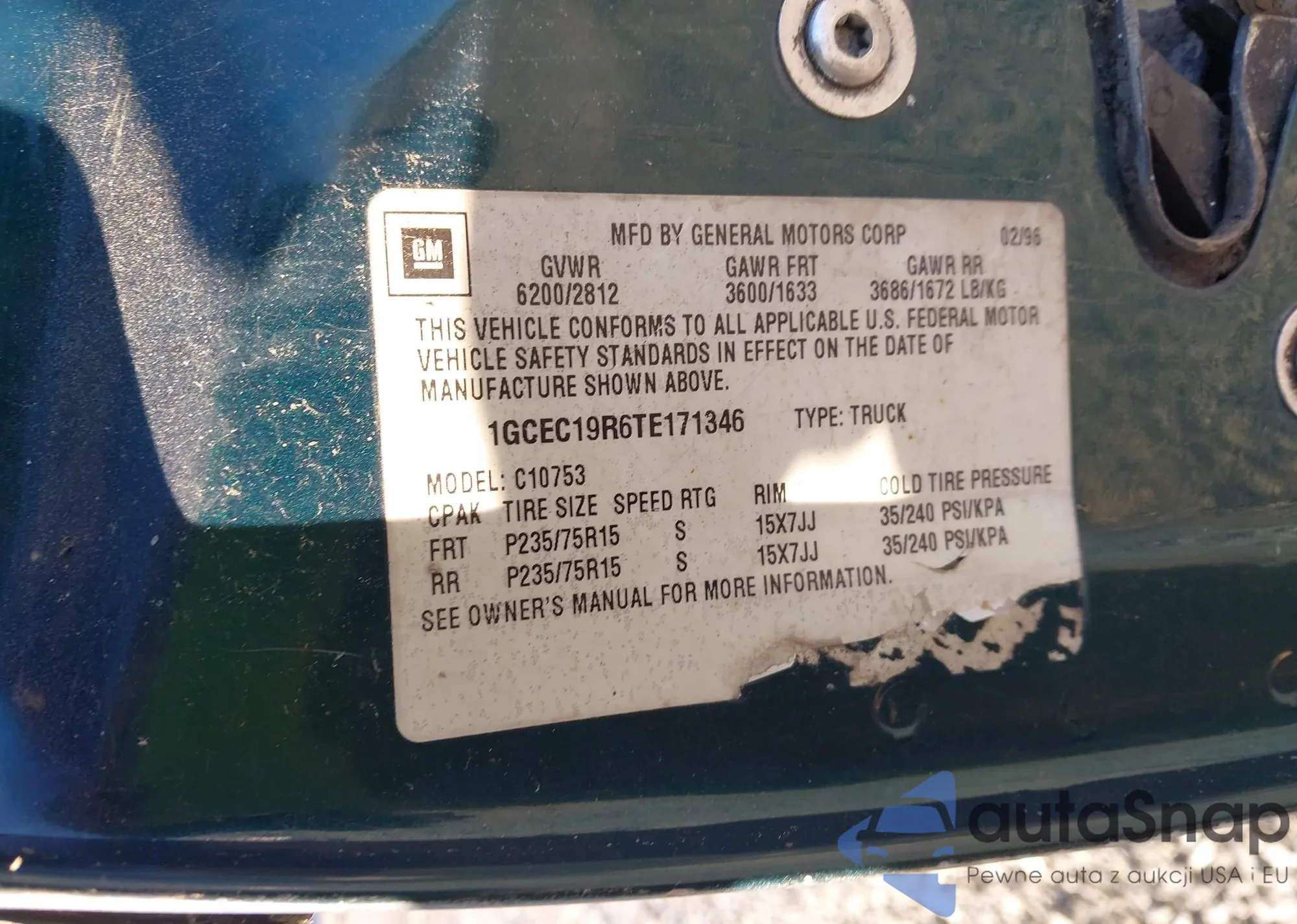 • VIN 1GCEC19R6TE171346