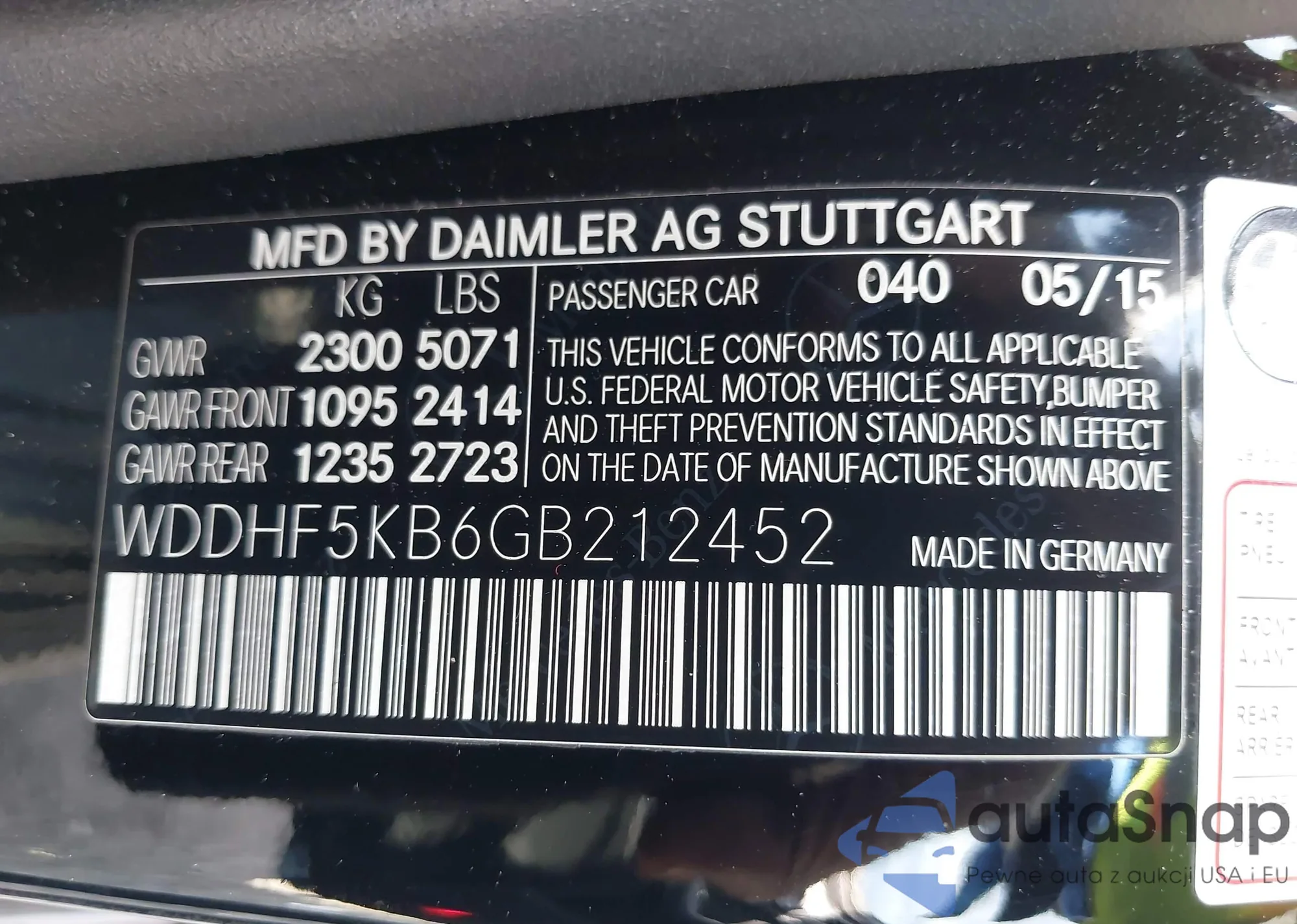 • VIN WDDHF5KB6GB212452