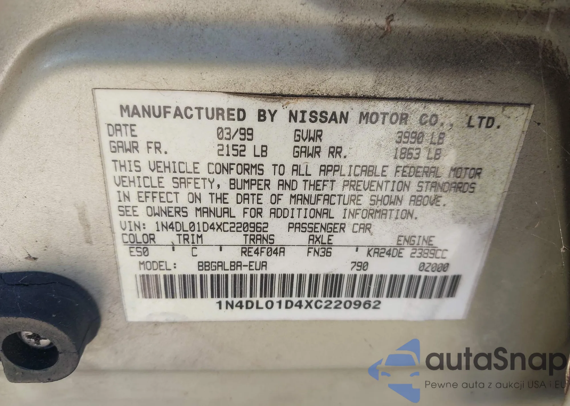 • VIN 1N4DL01D4XC220962