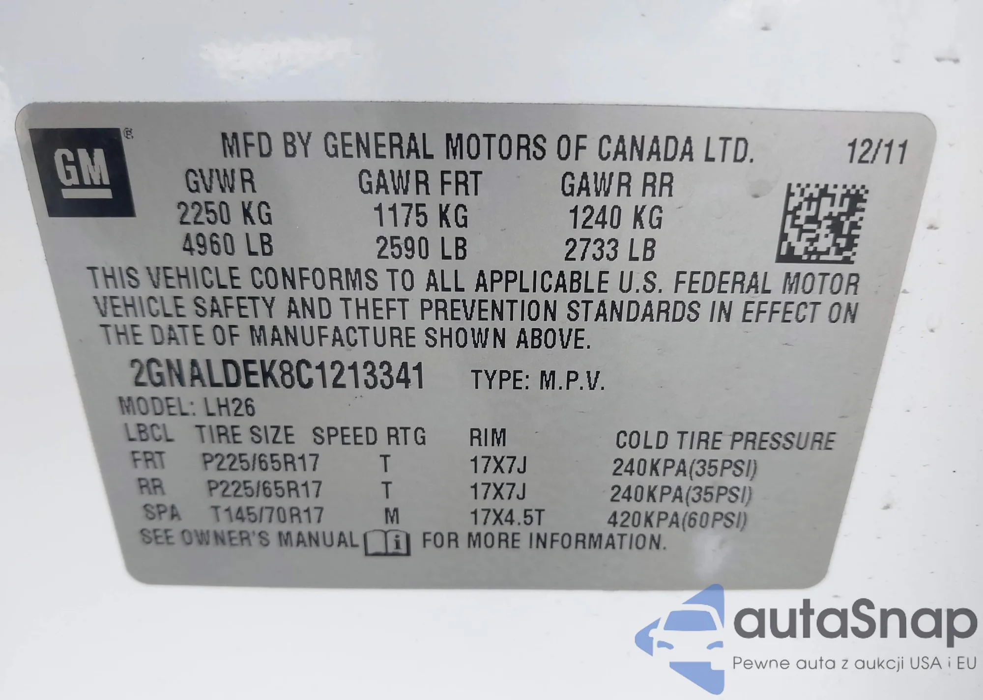 • VIN 2GNALDEK8C1213341