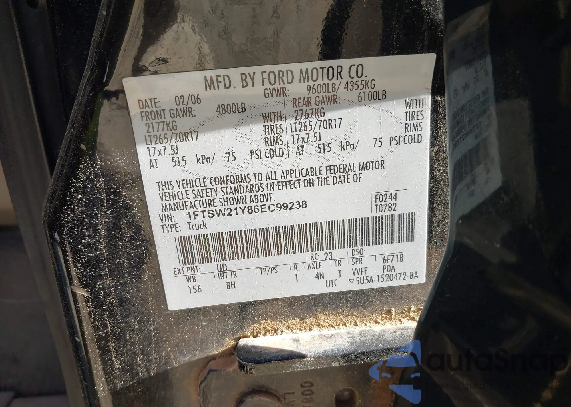 LOT: 43665278 VIN: 1FTZR15E04TA10541