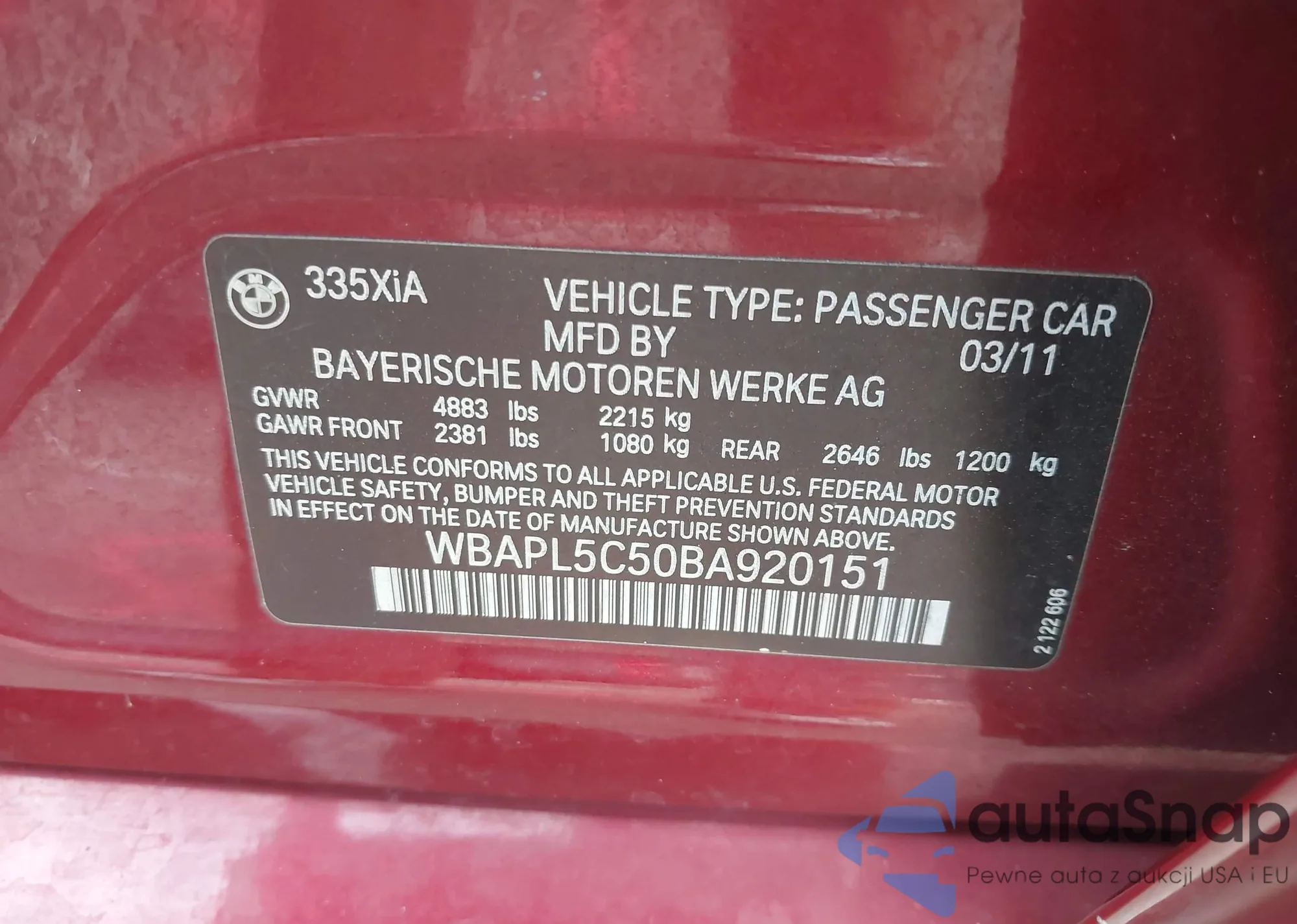 • VIN WBABB2306J8855814
