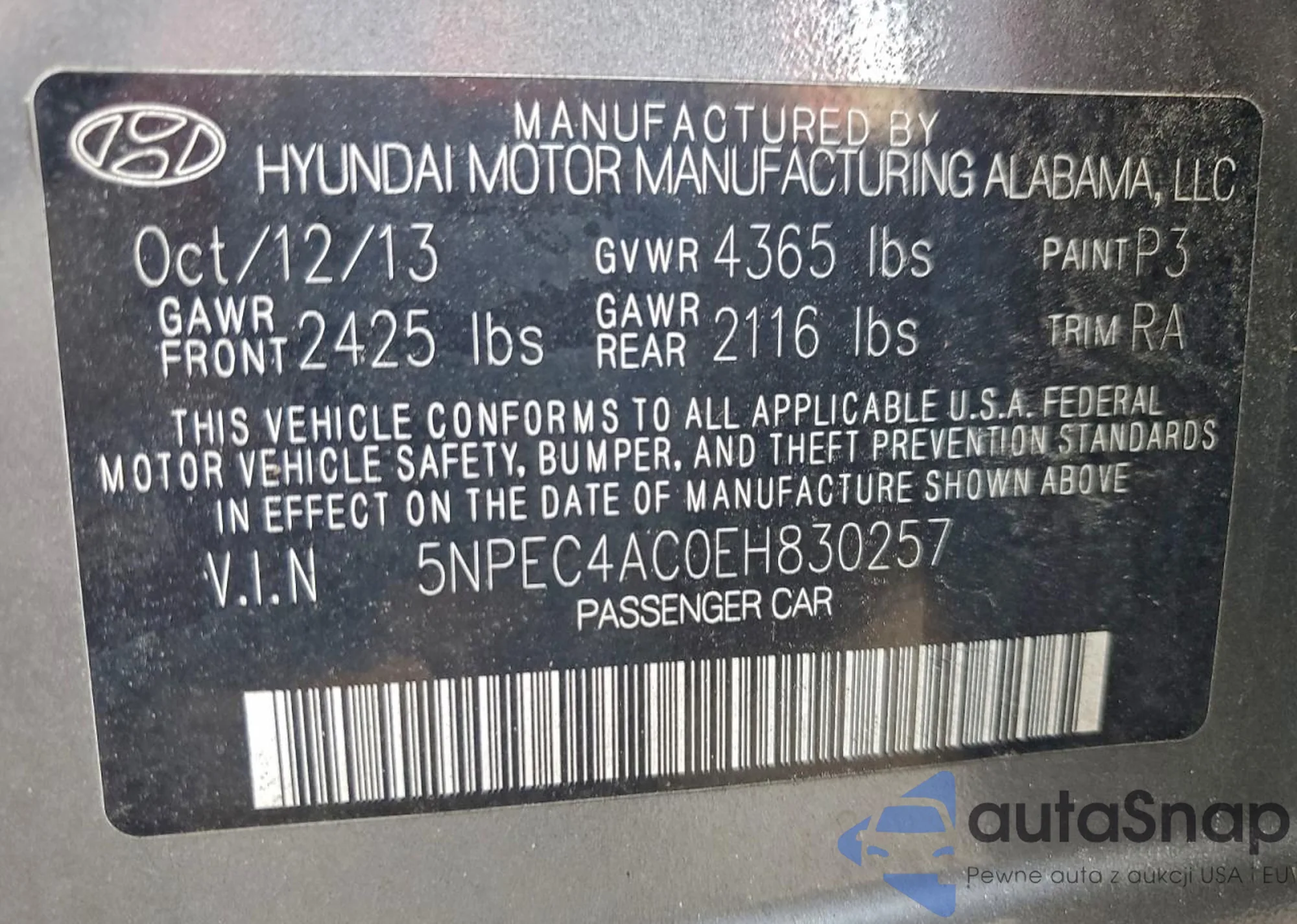 • VIN 5NPEC4AC0EH830257