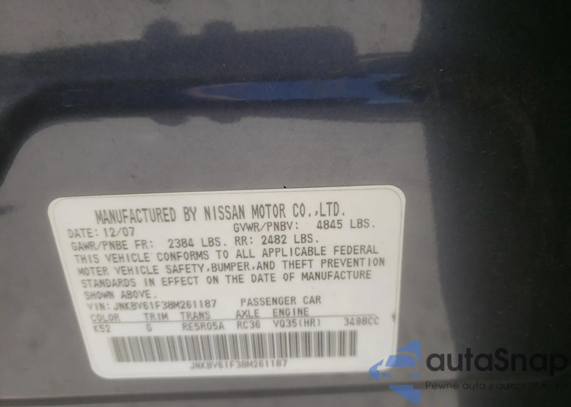 LOT: 91975655 VIN: JNKBV61F38M261187