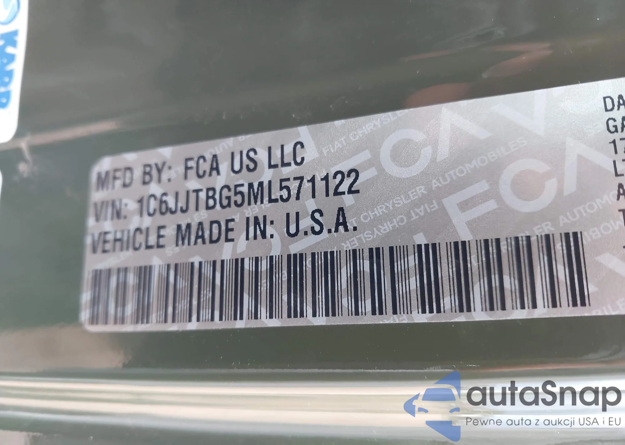 • VIN 1C6JJTBG5ML571122