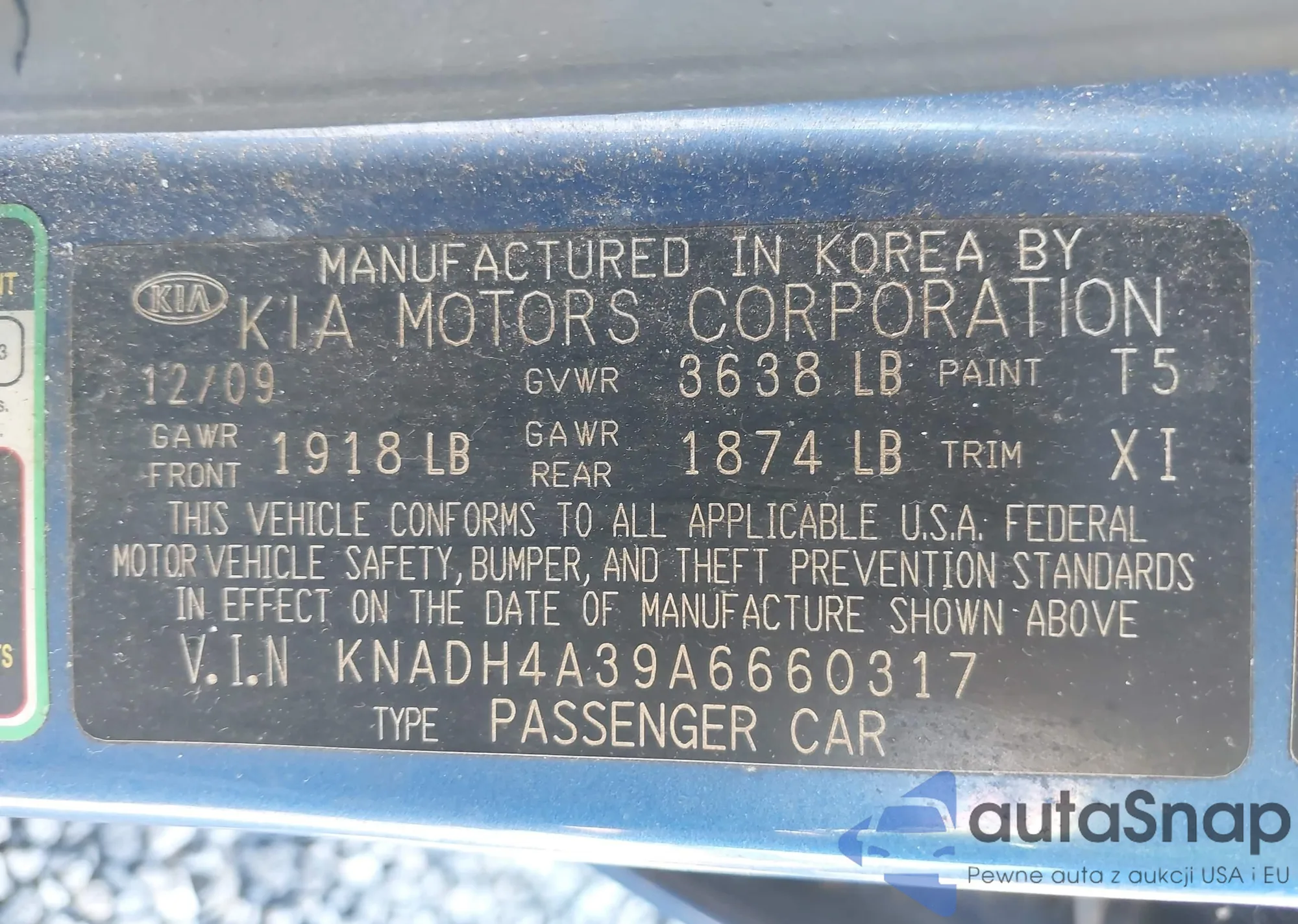 LOT: 43322093 VIN: KNADH4A39A6660317
