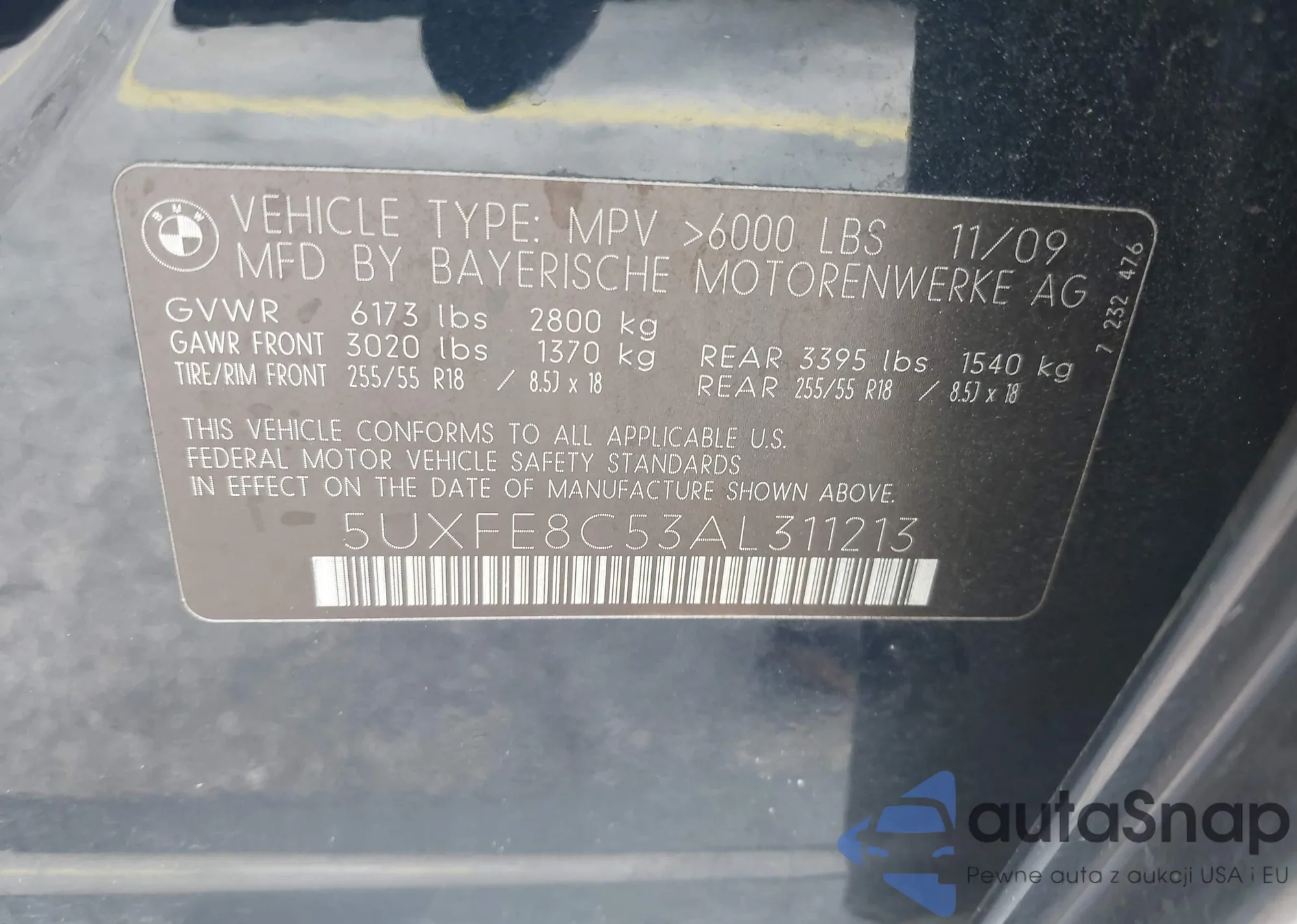 • VIN 5UXFE8C53AL311213