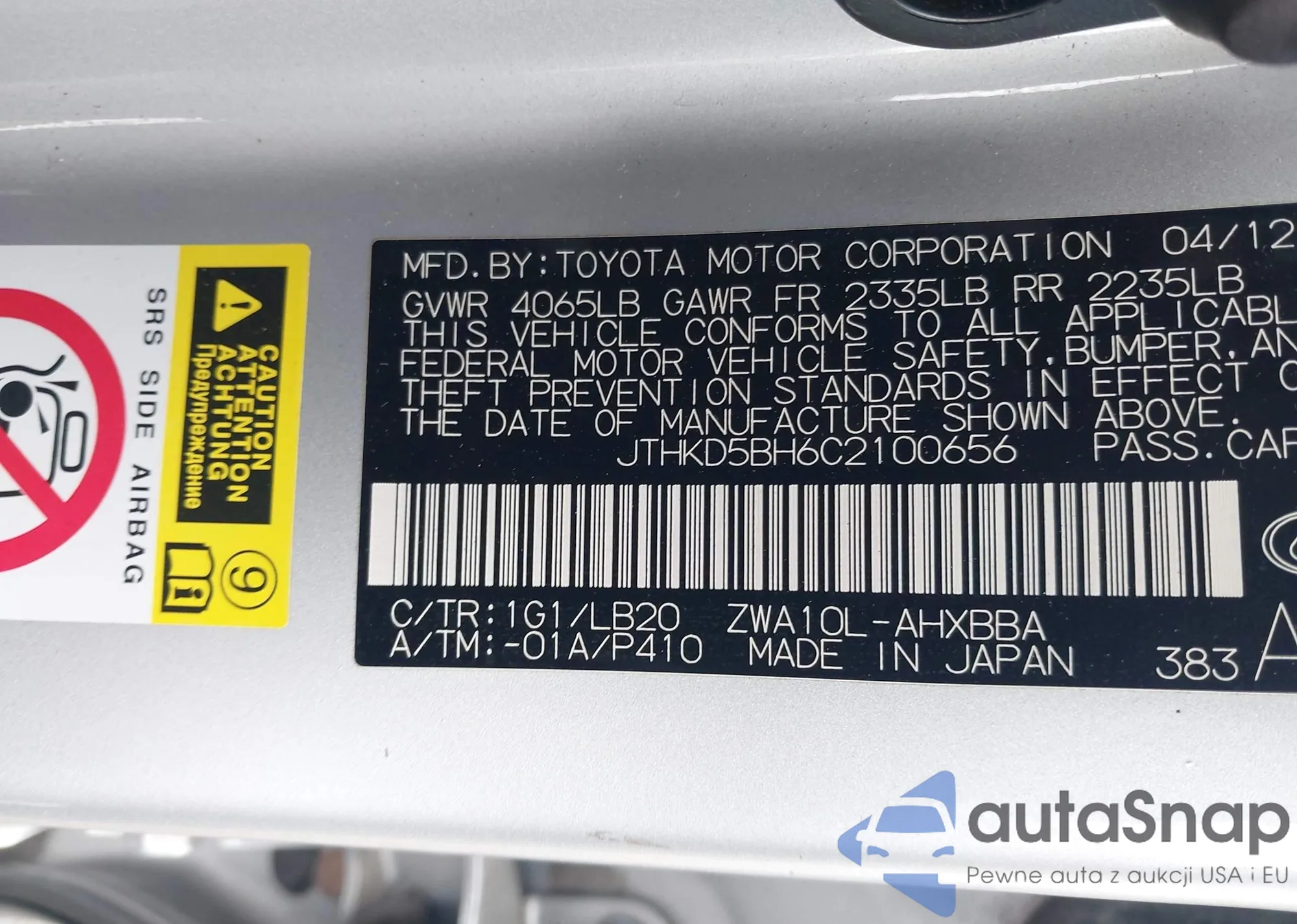 LOT: 43624311 VIN: JTHKD5BH6C2100656