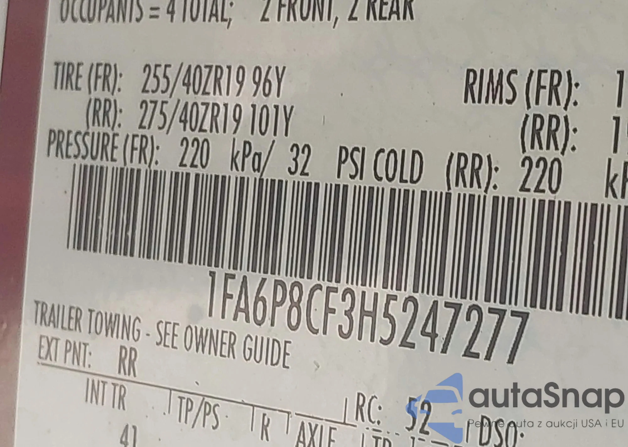 • VIN 1FA6P8CF3H5247277