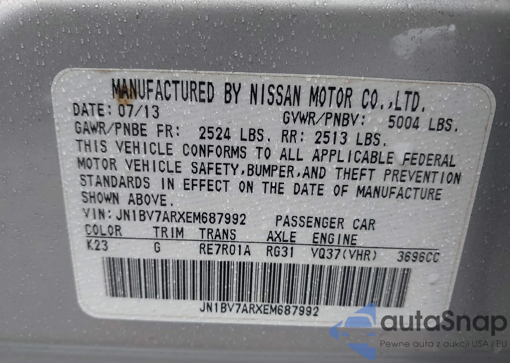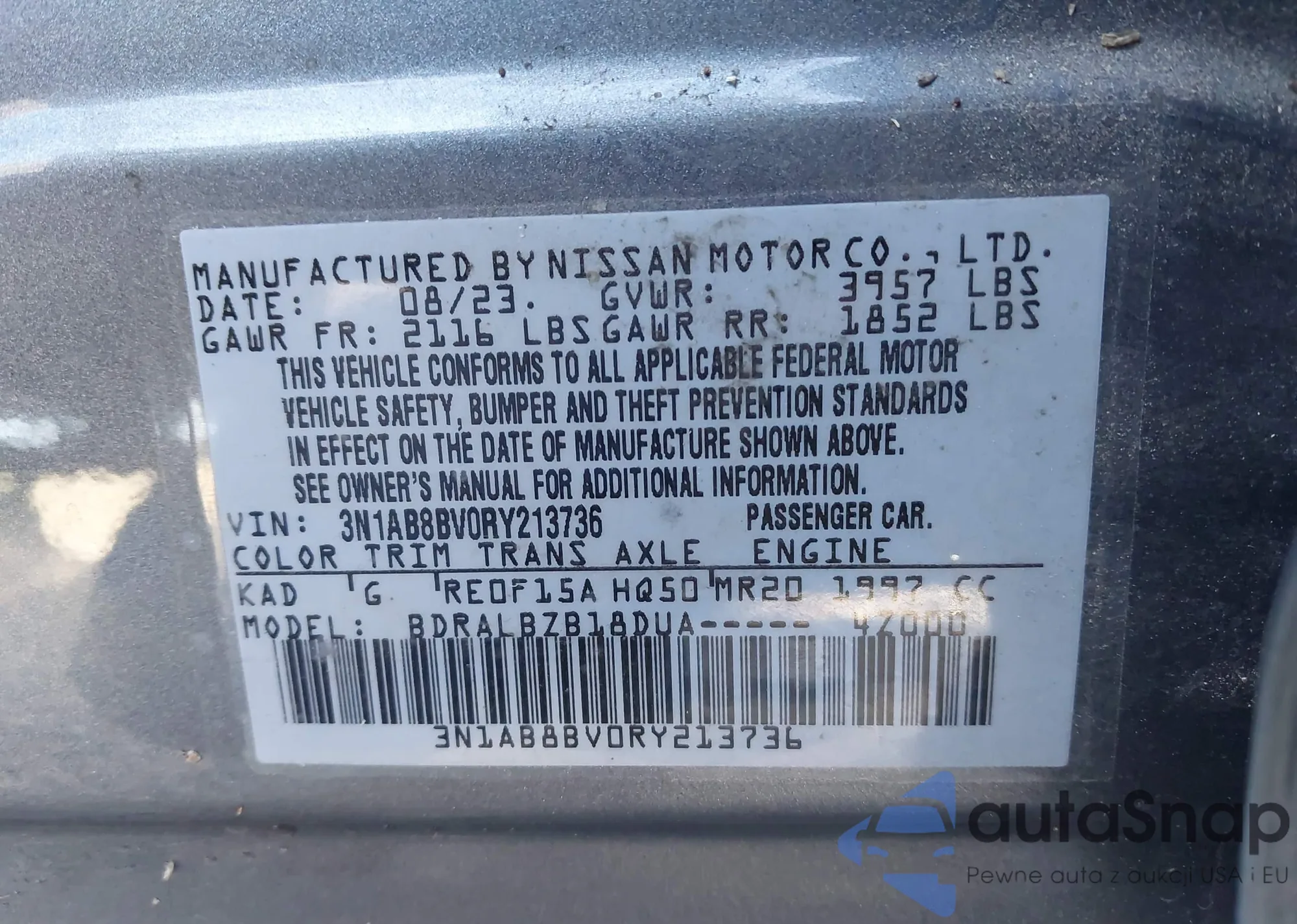 • VIN 3N1AB8BV0RY213736