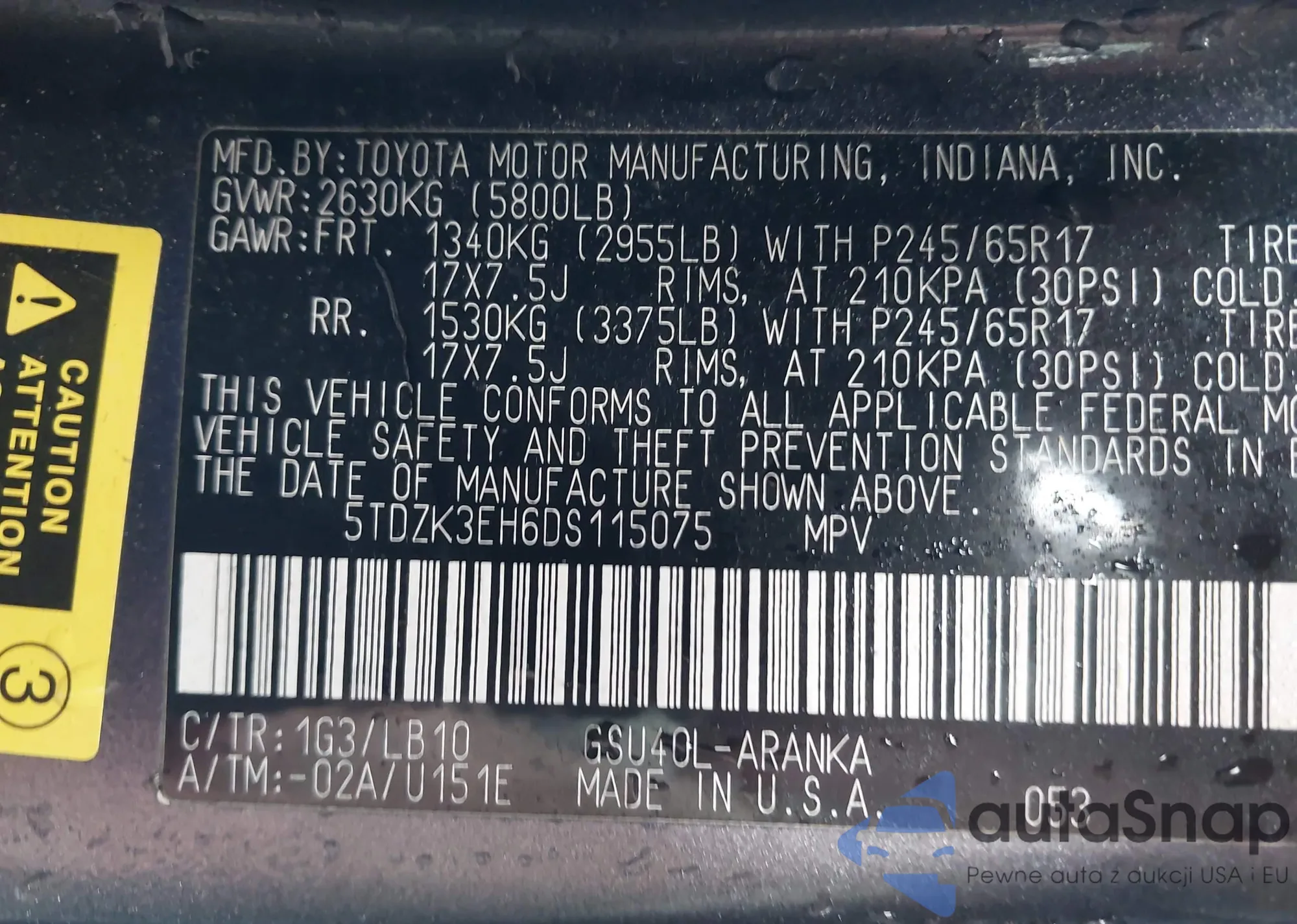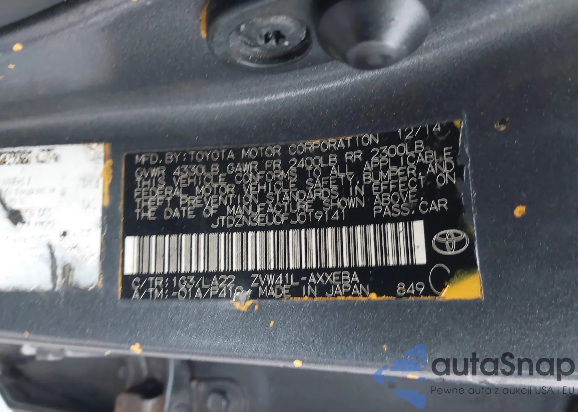 LOT: 43424590 VIN: JTDZN3EU0FJ019141