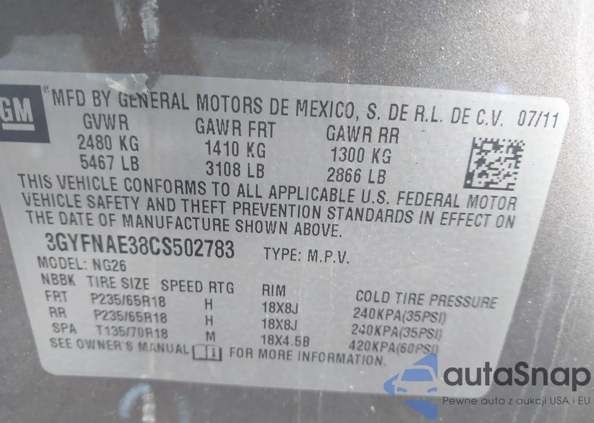 • VIN 3GYFNAE38CS502783