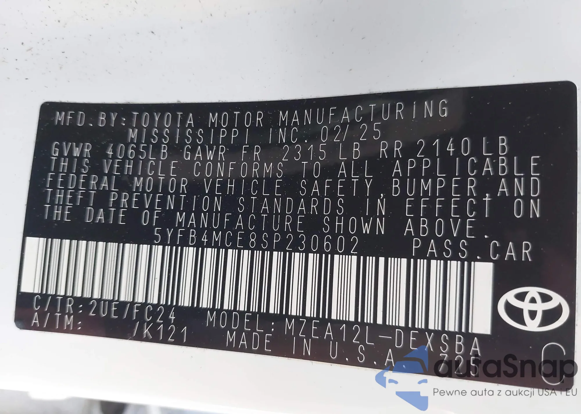 LOT: 43435142 VIN: 2T3Y1RFV5LW093010